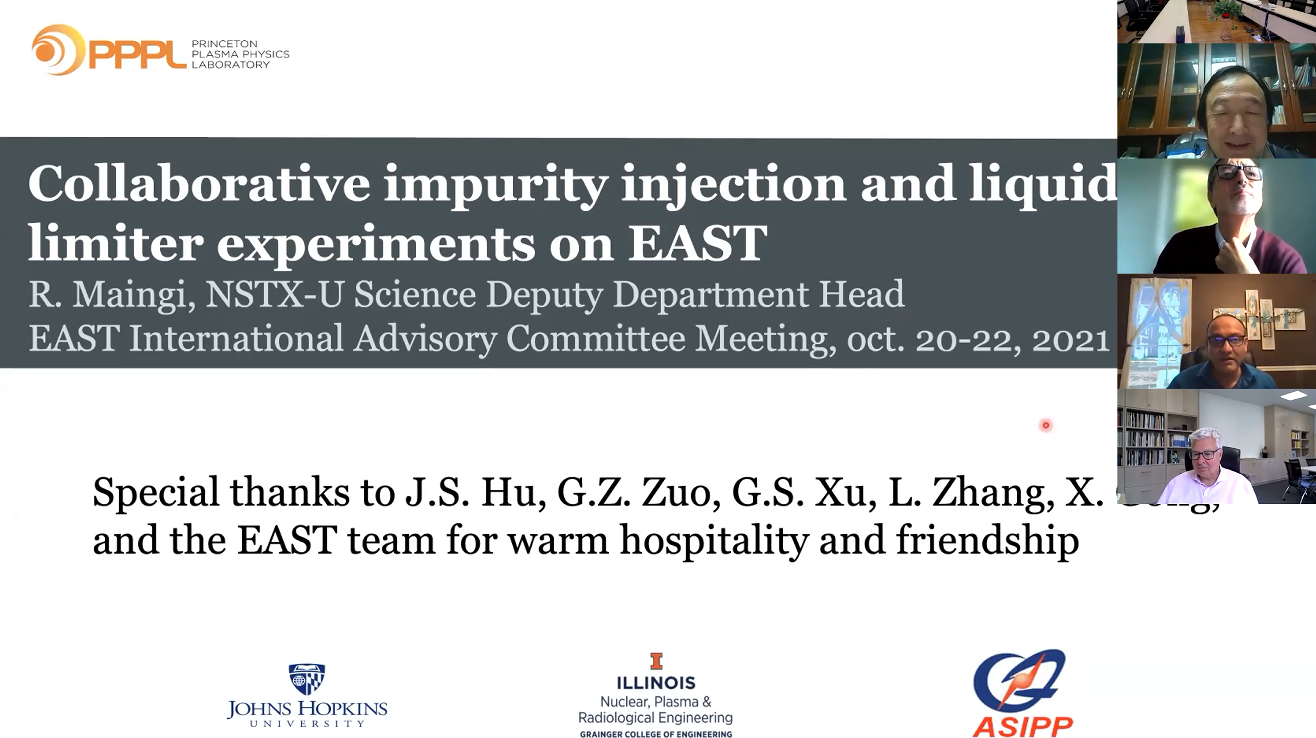 经过三天的会议,通过听报告、问答、闭门会议等多种形式,国际专家对EAST团队在过去两年中的工作进行了全面了解和细致梳理,并从实验运行、物理研究、工程升级、未来中长期计划、国际合作、人才培养、对未来装置的支撑作用等方面进行了全面的分析和评估。经过充分的内部讨论,委员会对近两年来的工作表示高度肯定,同时也就未来EAST研究方向、思路以及作用等提出了宝贵建议。