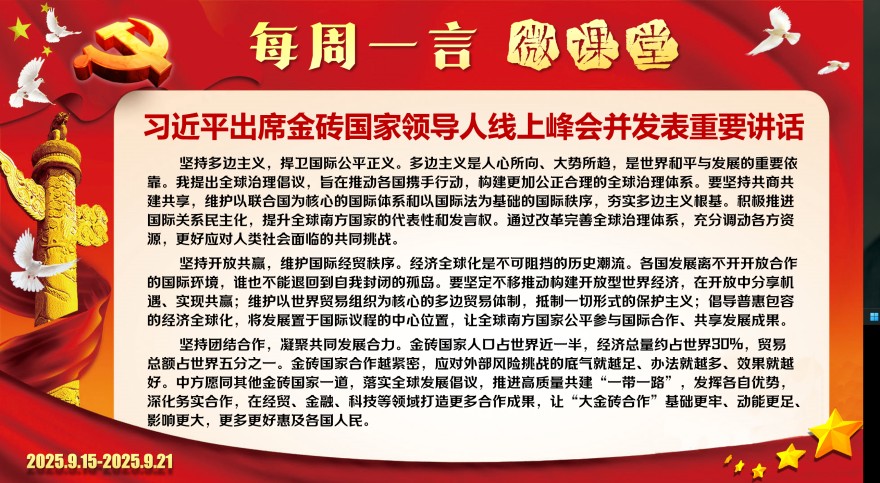 【20250915每周一言】习近平出席金砖国家领导人线上峰会并发表重要讲话