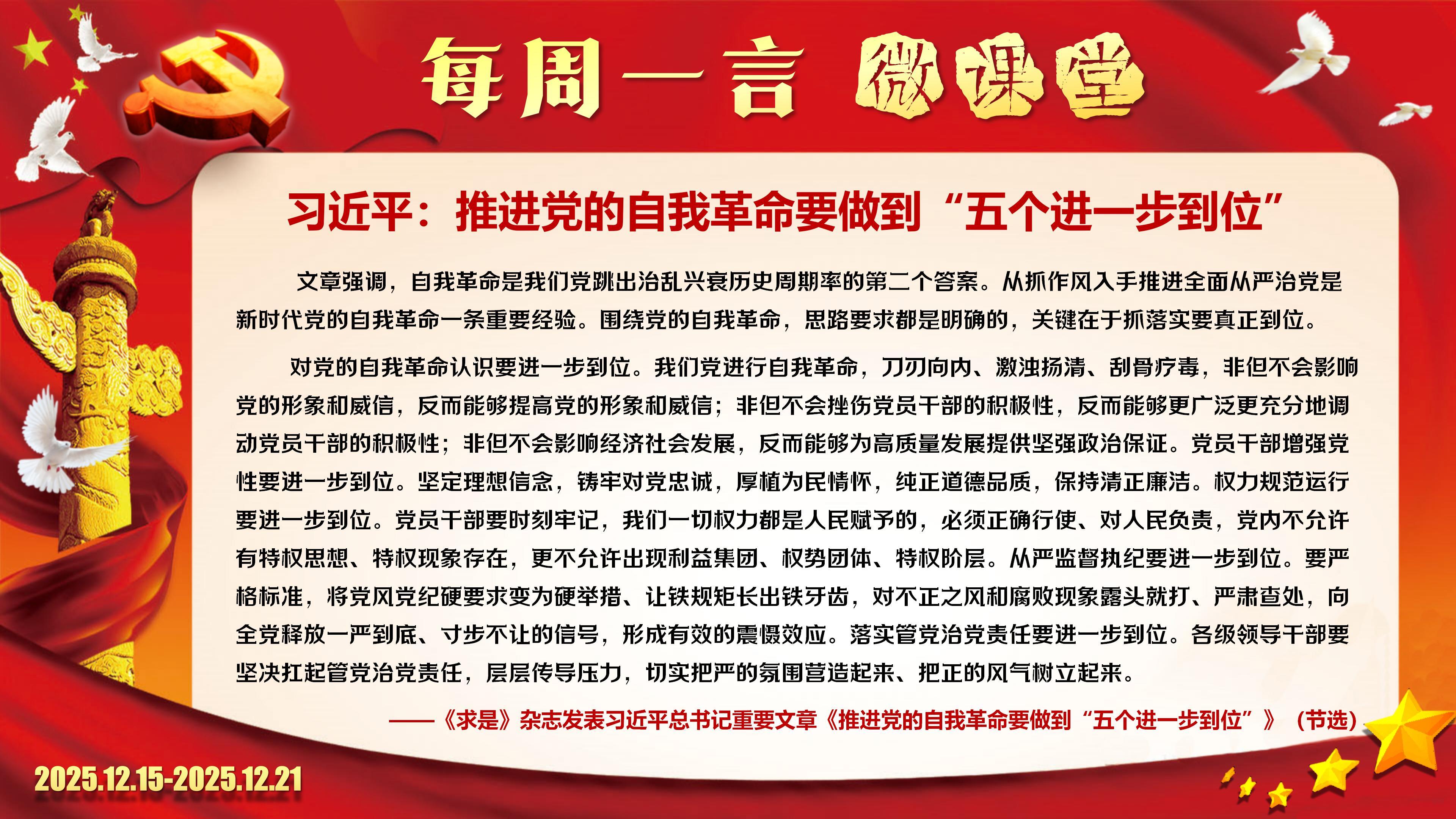 【20251215每周一言】习近平:推进党的自我革命要做到“五个进一步到位”