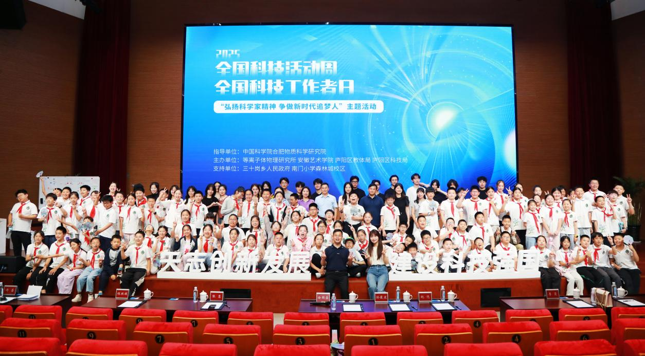 正逢第二十五个全国科技活动周和第九个全国科技工作者日来临之际,等离子体所“弘扬科学家精神 争做新时代追梦人”主题活动于5月28日在聚变堆园区会议中心举办。本次活动旨在积极响应全国科技活动周“矢志创新发展 建设科技强国”的号召,聚焦弘扬科学家精神,礼赞科技工作者,进一步传承科学薪火,讲好科学故事,激发广大师生的创新热情与爱国情怀。等离子体所副所长徐国盛、合肥现代科技馆馆长孙裴兰、安徽省艺术学院教授纪恺、三十岗乡人民政府书记张慧、庐阳区教体局政研室主任李霞应邀出席活动。等离子体所青年职工和学生代表,南门小学森林城校区学生代表,安徽艺术学院师生代表共300余人参加活动。