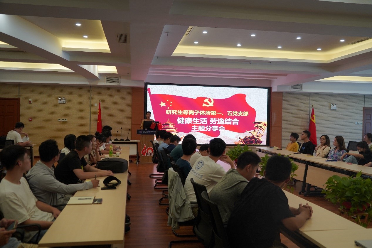 为深入贯彻落实习近平总书记有关建设健康中国的重要论述,响应普及健康生活的口号,增加研究生的生活趣味性,提高研究生身心健康水平,2021年7月20日下午,研究生等离子体所第一党支部、第五党支部联合举办了“健康生活,劳逸结合”为主题的分享会,两个支部全体研究生党员及入党积极分子参加。