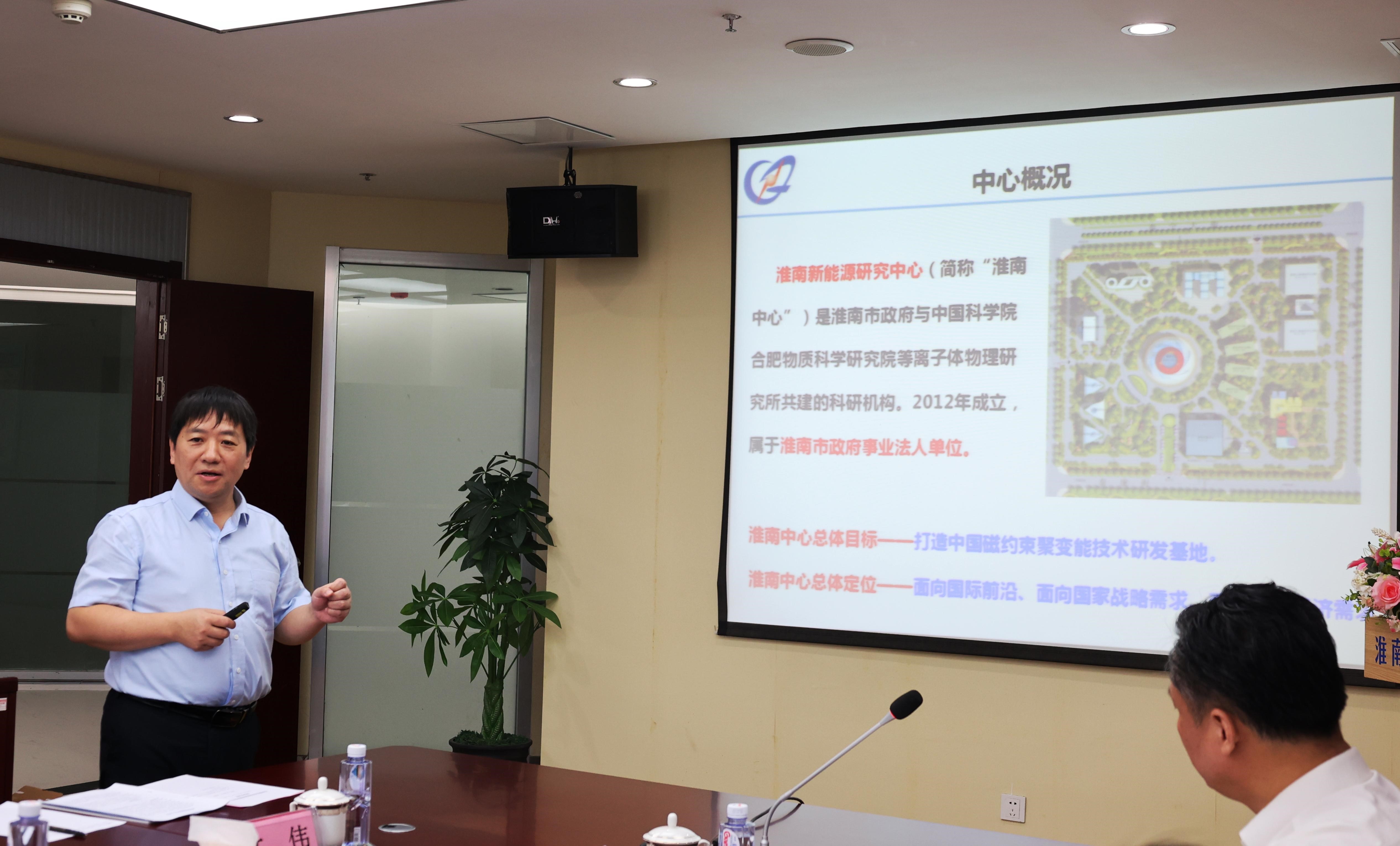 8月17日上午,淮南市委书记任泽锋率团调研淮南新能源研究中心并组织召开座谈会。淮南市政协主席蔡宜骅,市委副书记汪谦慎,市一级巡视员、市委秘书长胡东辉参加调研。等离子体所所长宋云涛、党委书记吴新潮、常务副所长刘甫坤、合肥研究院科技促进发展处处长邓国庆等出席会议。