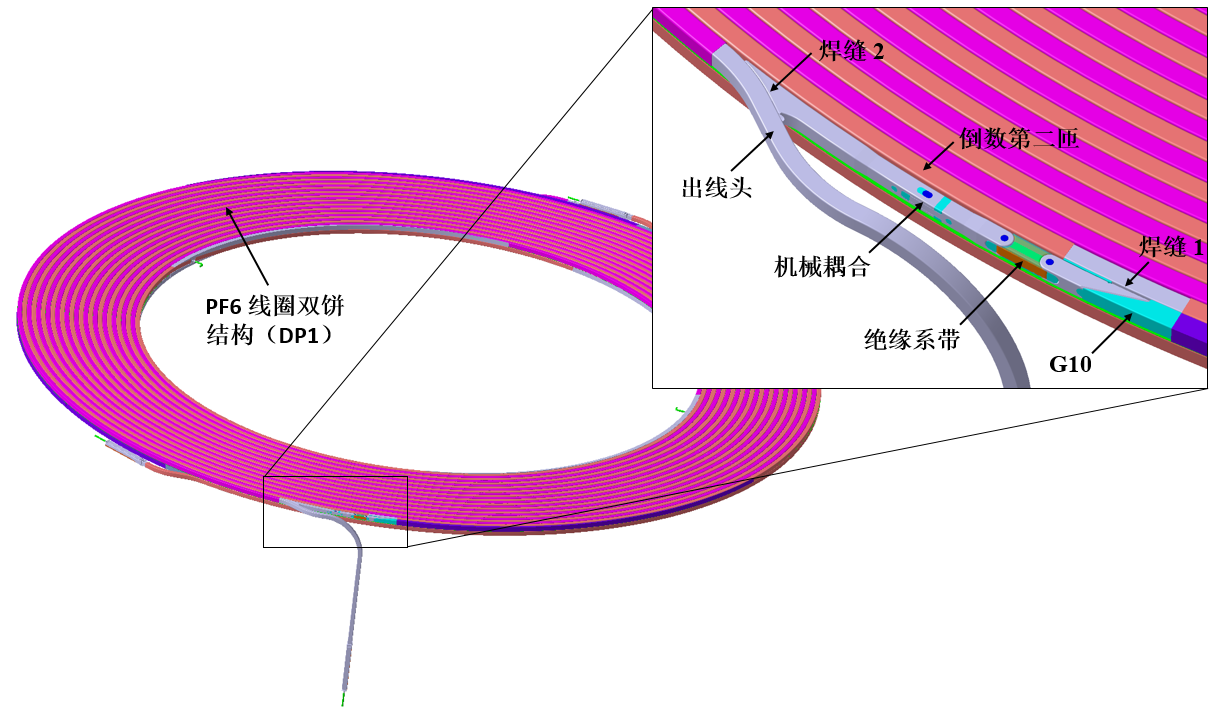 ITER PF6线圈双饼(AT1型)出线头尾段结构示意图