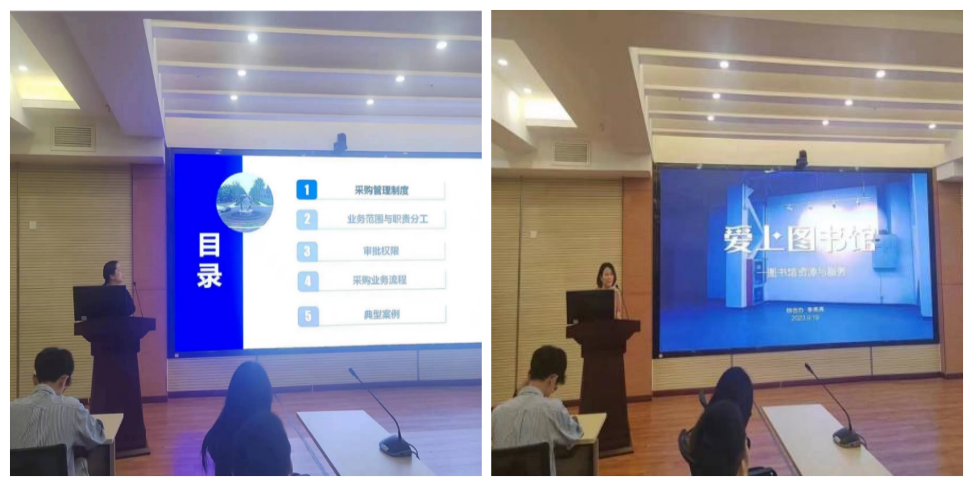 随后,综合办主任黄素贞和专项办主任刘志宏分别就综合办和专项办的部门概况、人员分工、规章制度、办事流程等内容作了详细介绍。专项办杨瑞娟与综合办李亮亮分别介绍了采购与合同管理以及所图书馆资源和服务,以便新职工和研究生能够熟悉和掌握所内各种平台资源、提高办事效率。
