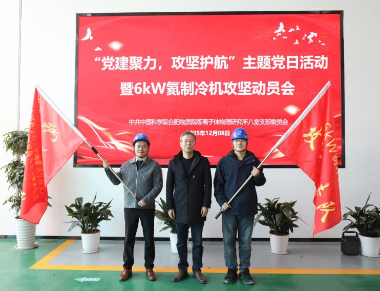 12月7日上午,八室党支部组织开展"党建聚力,攻坚护航"主题党日活动暨CRAFT 6kW氦制冷机攻坚动员会。活动旨在以高质量党建引领重大科研任务,为6kW氦制冷机按期、优质、安全完成安装调试提供坚强政治保证。等离子体所常务副所长、党委委员、纪委书记陆坤,所综合办副主任叶华龙出席活动。八室支部全体党员、项目骨干及合作施工公司代表参加。