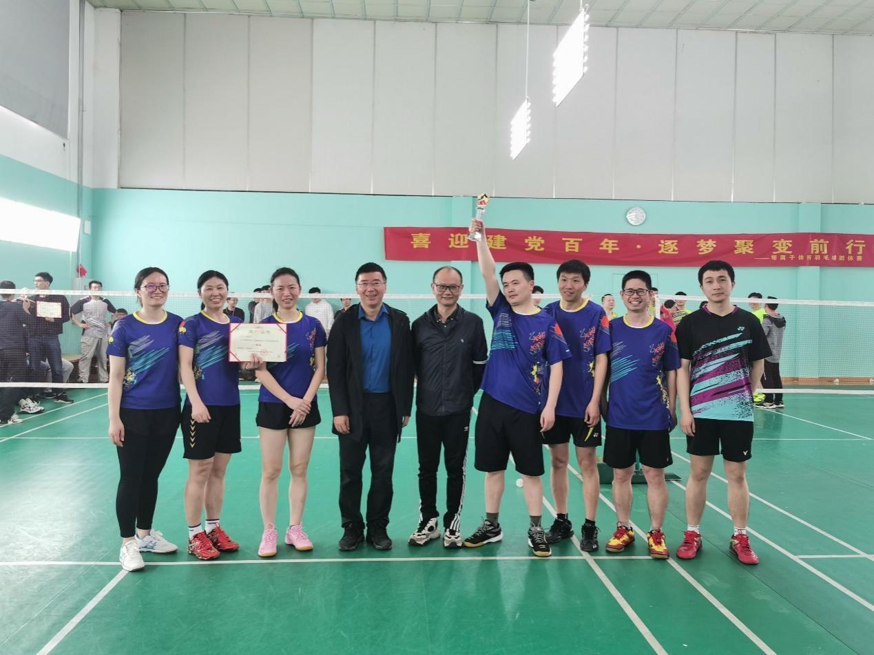 4月26日,等离子体所“喜迎建党百年 逐梦聚变前行”羽毛球混合团体赛热烈开赛。来自各个18个党支部的近百余人参加比赛。本次比赛共分为四个小组,设小组赛、八进四比赛、半决赛和决赛,每组比赛分男双1、女双、男双2,且上场比赛队员中至少包含一名所属支部书记或支委。经过两天的激烈角逐,六室代表队发扬团结协作、顽强拼搏、不断进取的精神风貌一举夺魁,荣获此次羽毛球比赛的冠军,等离子体所党委书记吴新潮颁奖并合影留念。