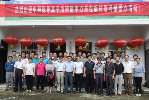 当天下午,研制中心党支部一行30多人还来到合肥研究院帮扶结对村——金寨县吴家店镇包畈村进行慰问,并向村里捐赠善款用于修路。在与包畈村干部的座谈会上,吴杰峰详细了解了包畈村目前的经济发展情况。他表示在得知村里的主干道尚有四公里没有修通,严重影响到村民交通和经济发展后,研制中心党支部内部发起了捐款倡议,并得到了全体党员的热烈响应。大家尽自己的微薄之力为老区人民献上一份爱心,将党组织的关怀和研制中心全体党员的爱心送到了包畈村民的心坎上。