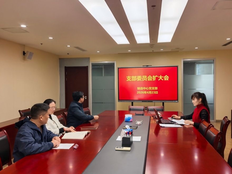 2026年4月23日,制造中心党支部召开支委扩大会,文伟、杨乐、马建国、张生、夏云霞参会。会议围绕近期重点工作进行部署,强调树立和践行正确政绩观,学习贯彻二十届四中全会精神。