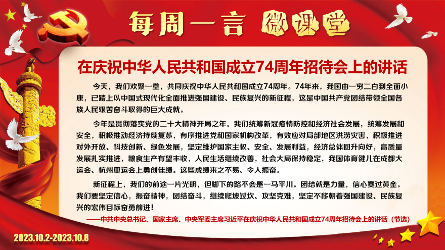 【20231002每周一言】在庆祝中华人民共和国成立74周年招待会上的讲话