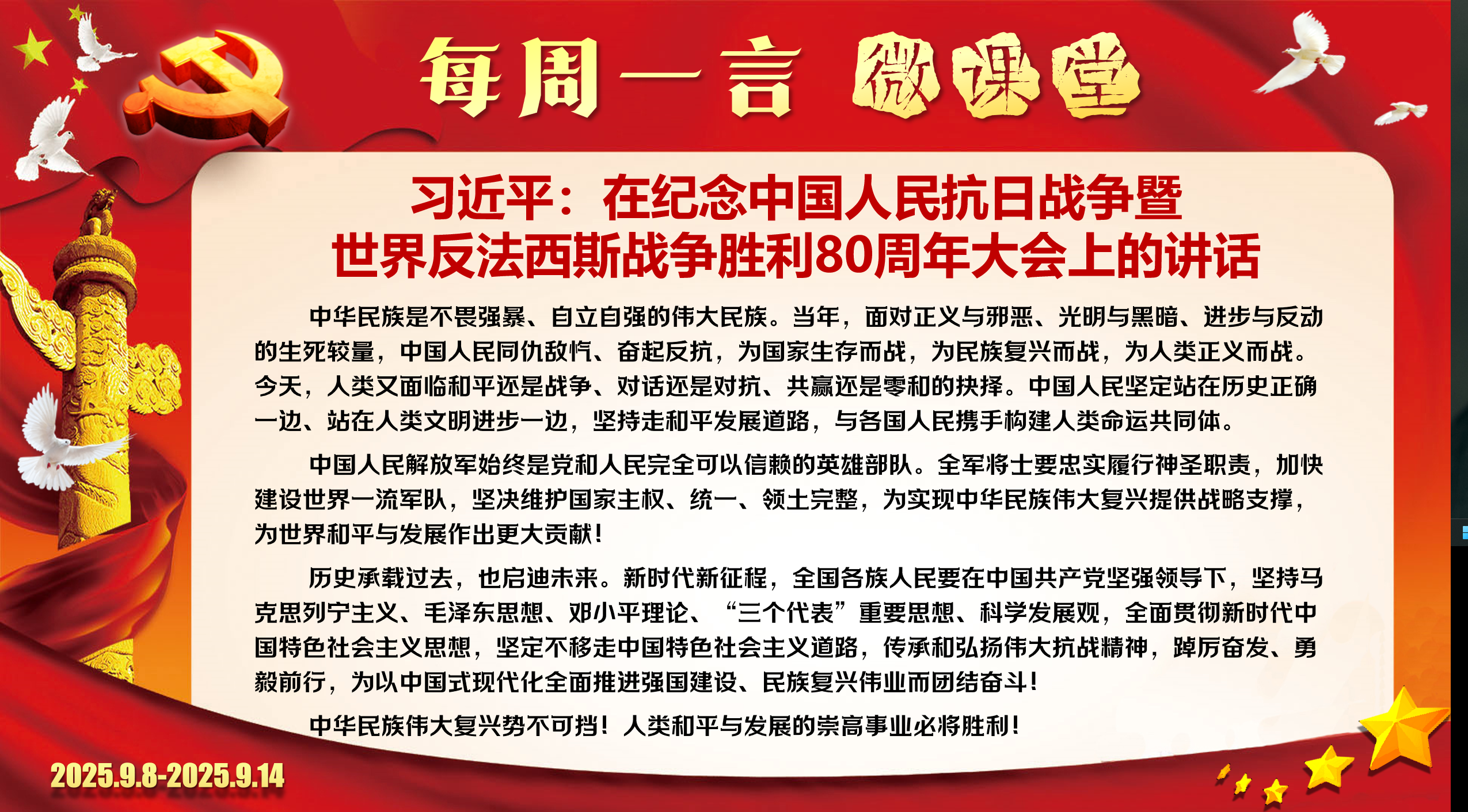 【20250908 每周一言】习近平:在纪念中国人民抗日战争暨世界反法西斯战争胜利80周年大会上的讲话