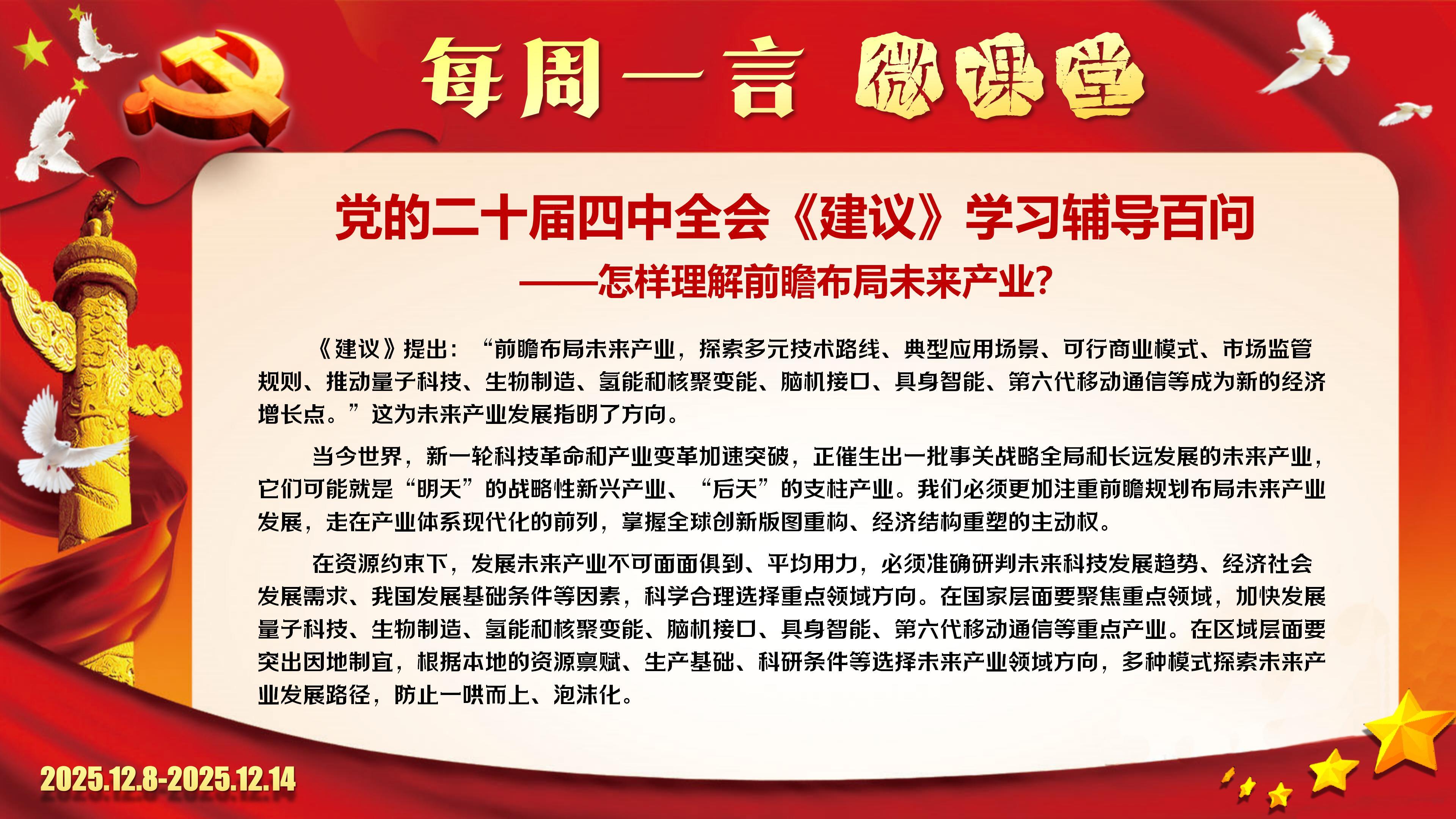 【20251208每周一言】党的二十届四中全会《建议》学习辅导白问——怎样理解前瞻布局未来产业?