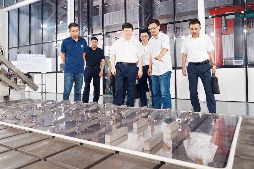 任泽峰书记一行先后参观了特种焊接技术安徽省重点实验室、BEST耐辐照高强度绝缘器件研发平台,以及BEST偏滤器和包层部件制造检测工艺车间,详细了解BEST校正场(CC)磁体制造等核心技术的研发进展和产业化应用情况。在随后的座谈会上,等离子体所副所长秦经刚就中心在新能源领域的技术突破及未来规划作了专题汇报。
