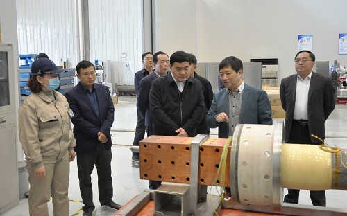 调研组一行实地考察淮南中心,了解中心在技术研发、人才引进等方面开展的工作。宋云涛详细介绍了中心科研项目的建设进展,特种焊接技术安徽省重点实验室已建成,华东地区唯一一台具备66.5立方米真空容积的大型高压真空电子束焊接系统投入使用;国际热核聚变实验堆ITER计划FEEDER采购包项目入驻淮南中心,完成生产线的装配工作,并顺利交付部分国际采购包任务。