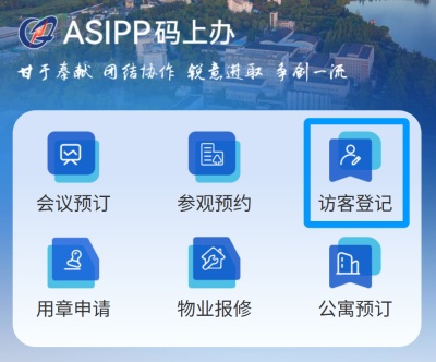 审核通过后需要进行外来车辆登记,请在小程序主页面点击“访客登记”。