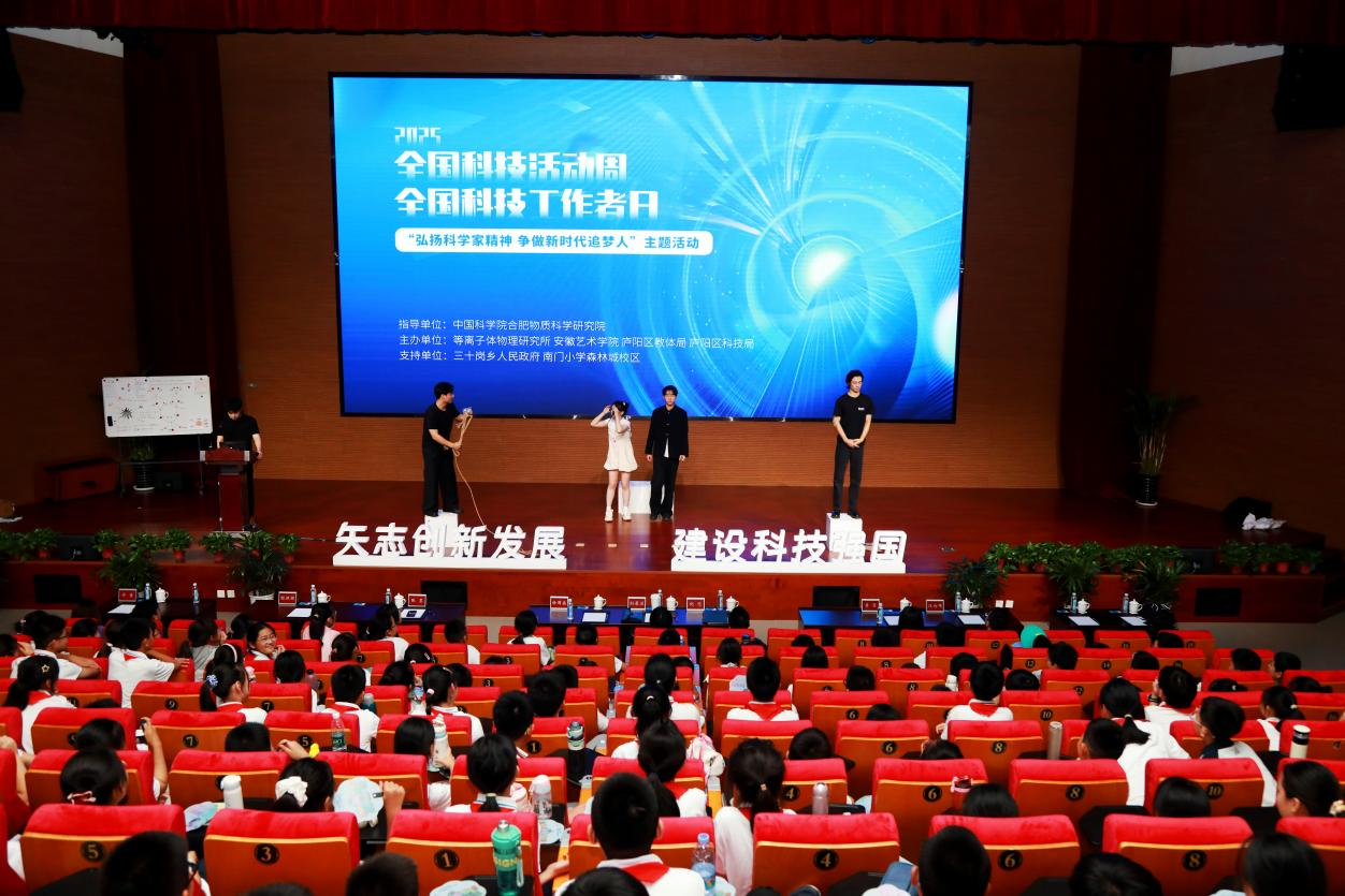 正逢第二十五个全国科技活动周和第九个全国科技工作者日来临之际,等离子体所“弘扬科学家精神 争做新时代追梦人”主题活动于5月28日在聚变堆园区会议中心举办。本次活动旨在积极响应全国科技活动周“矢志创新发展 建设科技强国”的号召,聚焦弘扬科学家精神,礼赞科技工作者,进一步传承科学薪火,讲好科学故事,激发广大师生的创新热情与爱国情怀。等离子体所副所长徐国盛、合肥现代科技馆馆长孙裴兰、安徽省艺术学院教授纪恺、三十岗乡人民政府书记张慧、庐阳区教体局政研室主任李霞应邀出席活动。等离子体所青年职工和学生代表,南门小学森林城校区学生代表,安徽艺术学院师生代表共300余人参加活动。