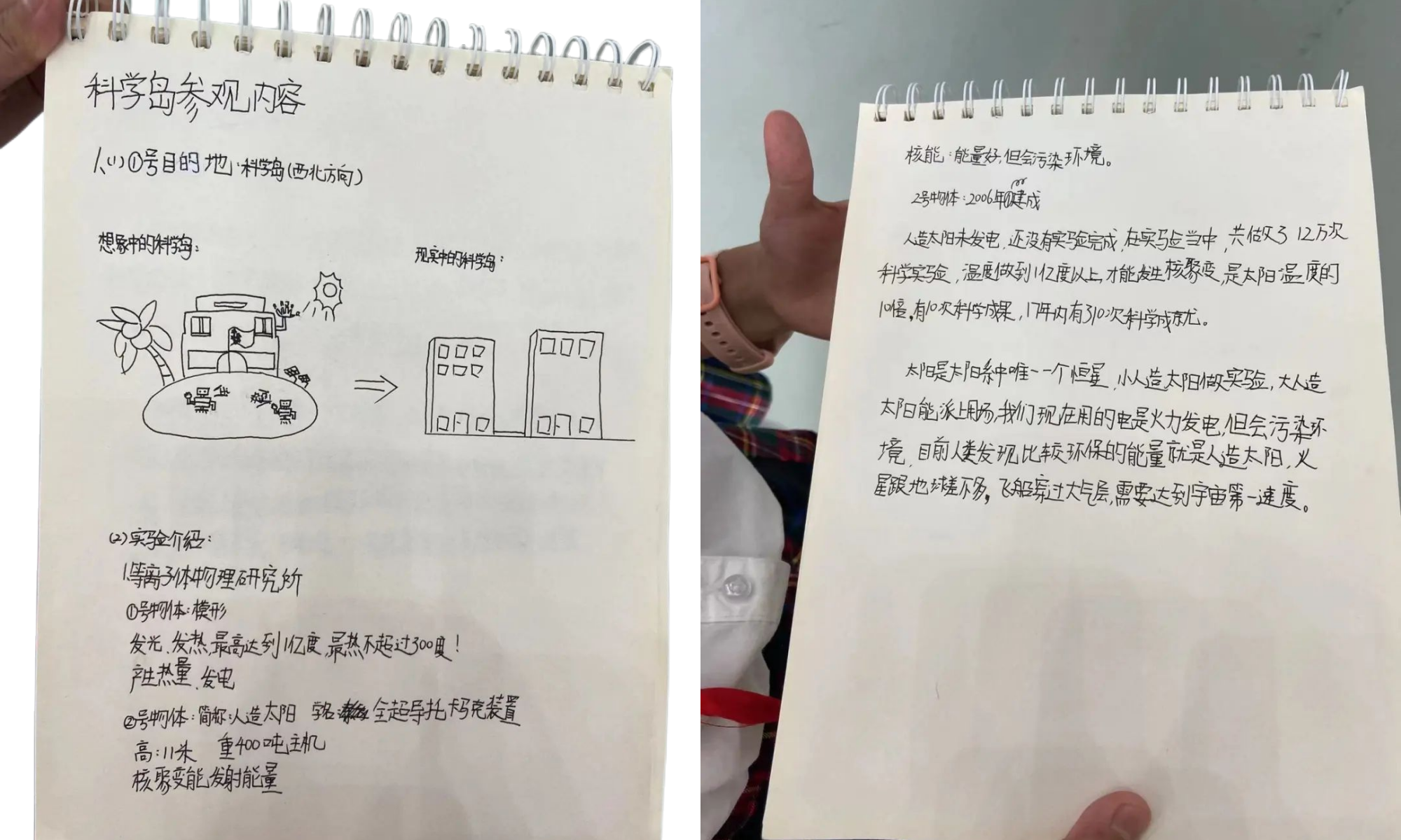 活动现场,庐阳区海棠街道“庐小志”代表、校外辅导员代表、长江路第三小学海棠花园校区四(6)中队科创小队,亳州路小学四(4)中队的少先队员们,实地参观全超导托卡马克EAST装置和聚变堆主机关键系统综合研究设施。孩子们近距离观察“人造太阳”装置,现场聆听讲解。“什么是核聚变?”“为什么要研发核聚变能源?”“核聚变的前景如何”……科普讲解员们用深入浅出、通俗易懂的语言徐徐描绘,孩子们认认真真做着笔记,踊跃提问,现场洋溢着浓厚的科学气氛。在“国之重器”面前,孩子们既震撼又兴奋,他们真实感受着合肥的“科里科气”,为国家科技进步而骄傲自豪。