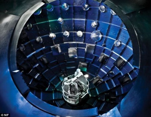借助于192台世界上功率最大的激光器,美国国家点火设施的科学家对一个小氢球进行加热,加热到数百万摄氏度。在随后的几纳米时间里,小氢球发生爆炸,所释放的能量超过引发核聚变消耗的燃料。
