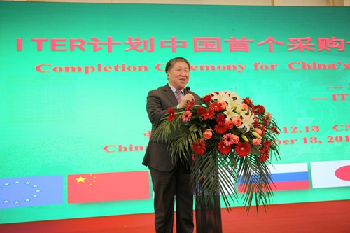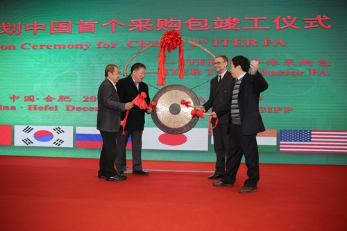 12月18日上午,国际热核聚变实验堆ITER计划中国首个采购包——纵场线圈(TF)导体采购包竣工仪式在等离子体所举办。国家科技部副部长曹健林、ITER国际组织导体部门负责人Arnaud Devred、中国国际核聚变能源计划执行中心常务副主任罗德隆、安徽省科技厅副厅长罗平、中科院等离子体所所长万宝年和相关合作单位等领导出席仪式。仪式由国际核聚变能源计划执行中心主办,等离子体所承办。