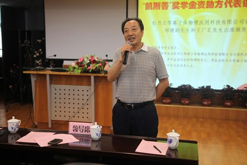 随后,颁发了所长奖学金的各个奖项。获得本届“所长奖学金”特别奖的是王松可、王福琼、孙震、杨树斌。“所长奖学金”优秀奖由于伟红、伍兴权、任君、刘凤、汪震、陈大龙、陈赫、胡剑、夏敏学、曹光明等10人获得,“凯斯普优秀奖”由方超、史善爽、刘小川、刘祥、汤允迎、邹春龙、林启富、赵远哲、戴超等9人获得。孙震和赵远哲分别作为“所长奖学金”和“凯斯普奖学金”获奖者代表发表感言,表示今后将继续努力学习,兢兢业业做好工作。凯斯普奖学金资助方牡丹江等离子体物理应用科技有限公司董事长邹德润在讲话中肯定了我所青年人才的科技创新能力并期望双方在科技成果转化方面开展更多合作。