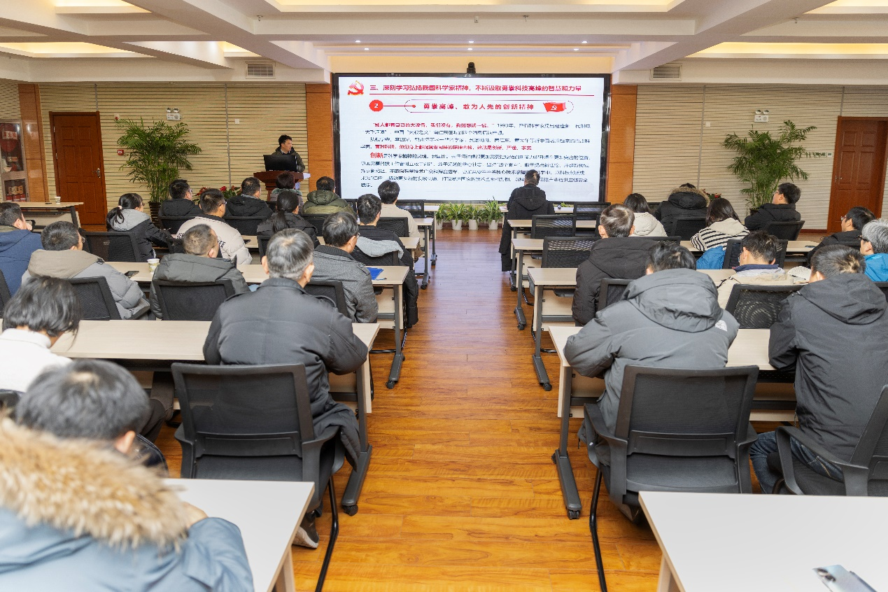 党课上,钱金平带领全体与会党员代表学习、回顾、梳理了百年来党的科技思想和科技实践的伟大历史,深入挖掘了百年党史中蕴藏的科学家精神宝贵财富,深入学习理解了新中国取得伟大科技成就的必然性和优越性。