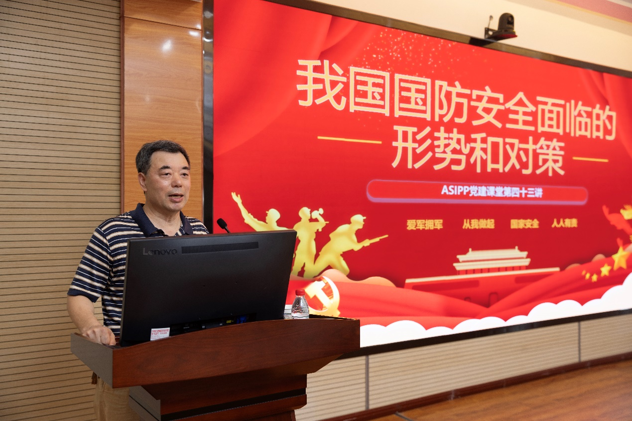在建军97周年之际,为增强党员的国防安全意识,深入了解我国国防安全面临的形势和对策,2024年8月21日下午,等离子体所开展了“ASIPP党建课堂”第43期活动。本次活动邀请到合肥市科协原副主席、安徽省科普作家协会国防专委会主任尹维堂为全体党员代表作题为《我国国防安全面临的形势和对策》的党课报告。活动由党委书记吴新潮主持,所属十八个党支部的一百余名党员代表参加党课学习。