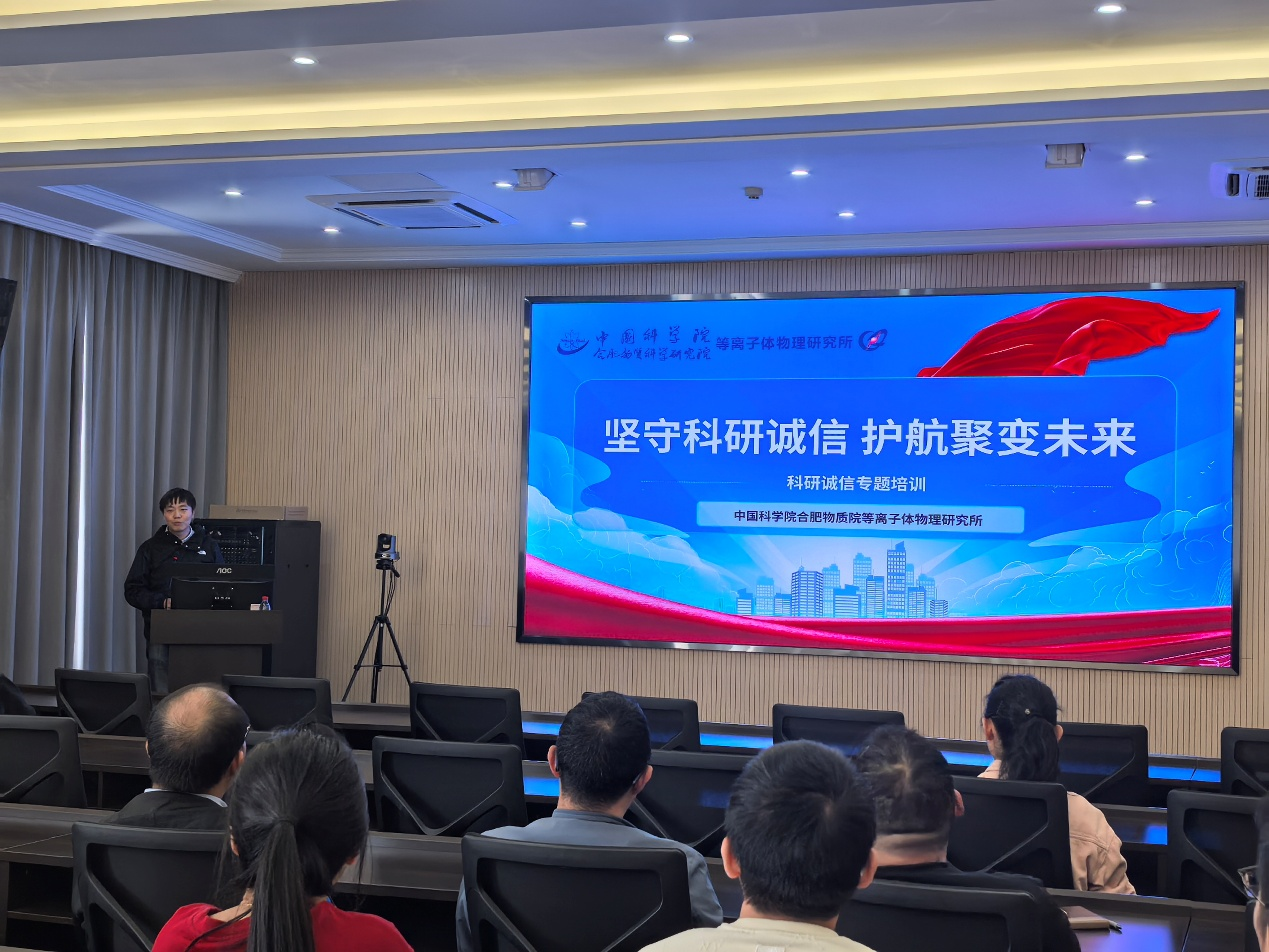 会议首先由丁锐做题为《坚守科研诚信 护航聚变未来》的报告,报告强调了科研诚信是科技工作的生命线,也是大科学工程团队文化不可或缺的核心内涵,科研失信会给个人和集体带来严重危害,面向国家聚变能源发展的重大需求,每一位团队成员都应以身作则,将诚信原则贯穿于项目申报、实验记录、数据分析和成果发表的全过程,共同维护集体声誉,捍卫学术尊严。