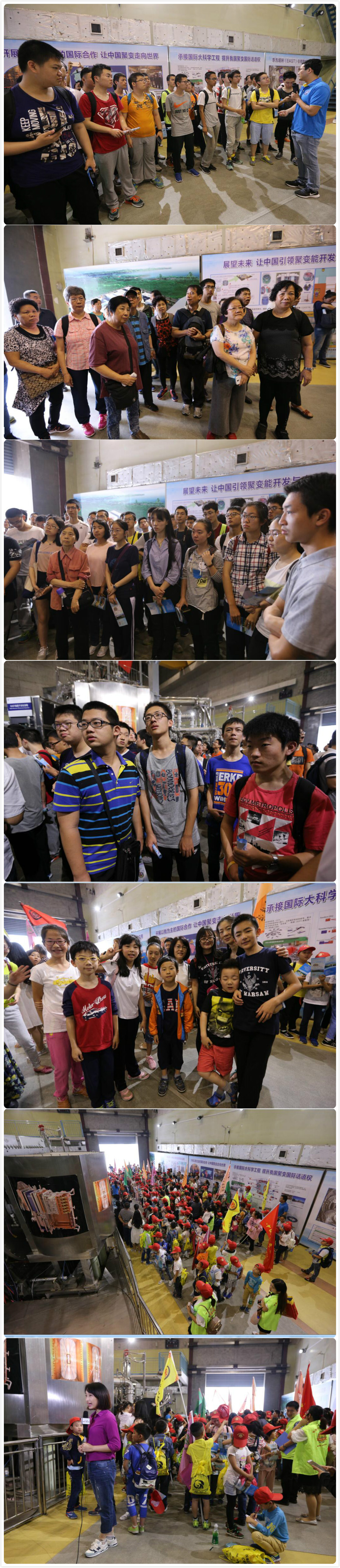 本年度科普开放日,来所参观的人数是往年的3倍。有来自中国科技大学、合肥工业大学、合肥42中、科学岛附中、六安路小学等大中小学的1500多名学生,也有来自中电集团、科大、科学岛等兄弟单位的科技工作者,此外大多是来自合肥市属各辖区的热心公众。在EAST大厅,人造小太阳的模样以及它的目的和用途,核聚变研究的必要性和聚变能的优越性,等离子体的概念,核聚变的原理、世界聚变研究的概况,我国科学家的贡献,核聚变能离我们还有多远……这些公众感兴趣的话题,通过实地参观考察,听取通俗介绍,对人造太阳和核聚变基础科学研究有了更加理性的认识。更值得一提的是,公众通过来所参与开放日活动,了解我国聚变研究走在世界前列的情况,更加增强了民族自豪感,感受国家科技创新的实力。