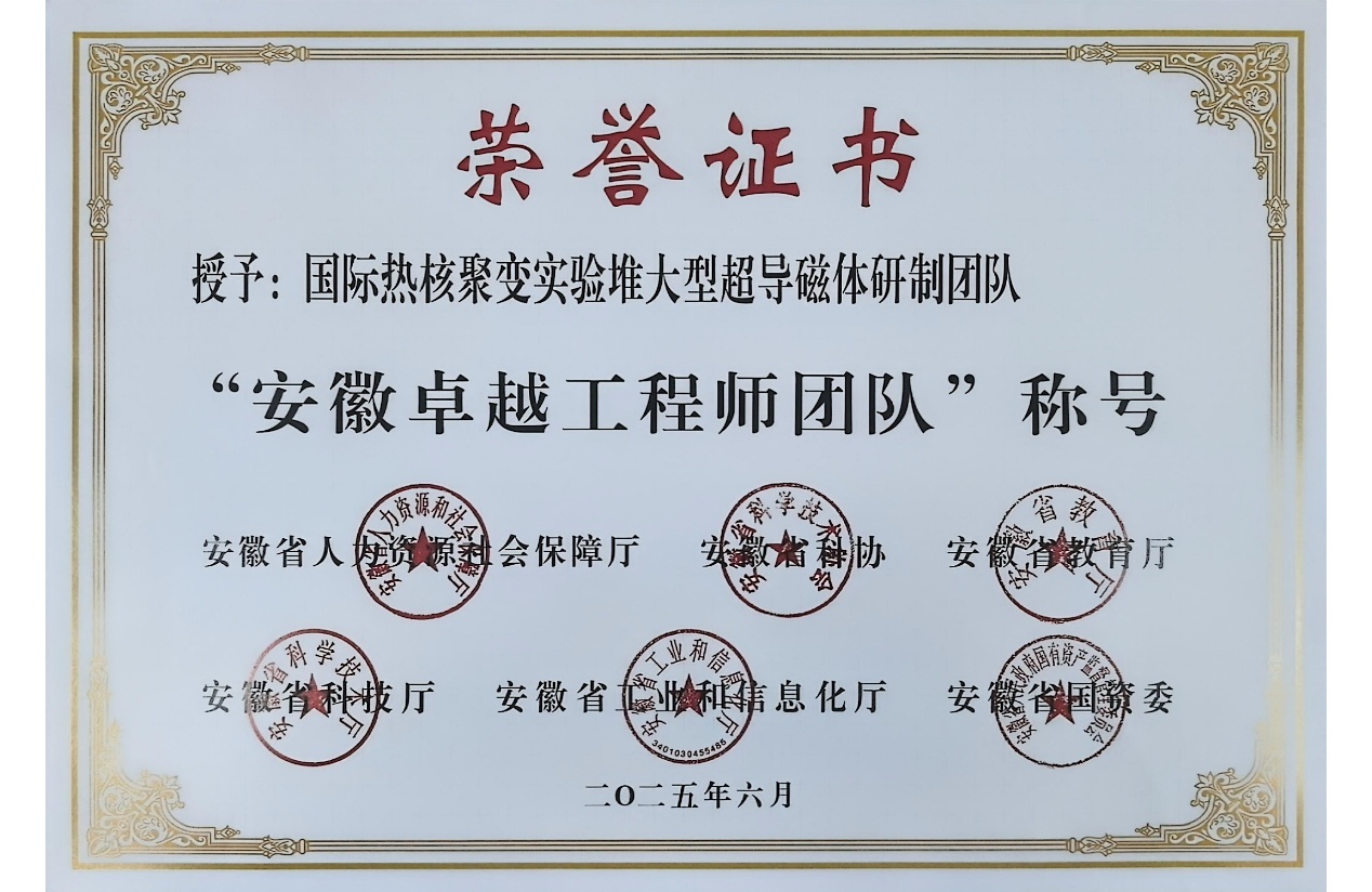 国际热核聚变实验堆大型超导磁体研制团队荣获 “安徽省卓越工程师团队”称号