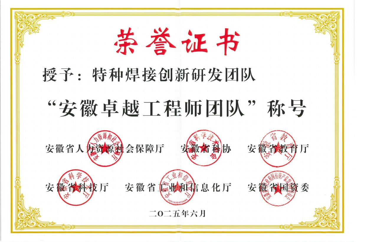 淮南新能源研究中心特种焊接创新研发团队荣获 “安徽省卓越工程师团队”称号