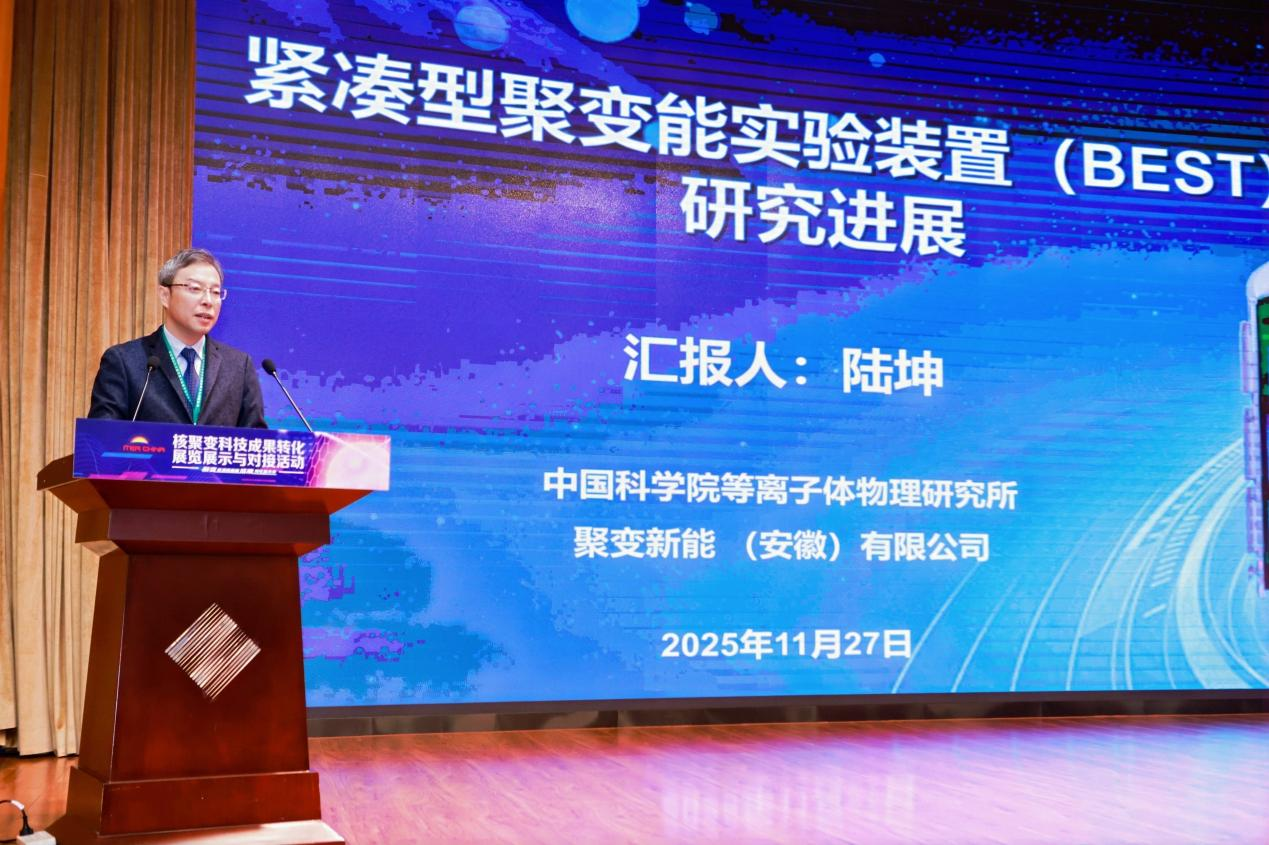 11月27日,由中国国际核聚变能源计划执行中心主办的核聚变科技成果转化展览展示与对接活动在中国科技会堂举行。本次活动以“聚变能源启新篇成果转化赢未来”为主题,包含政策解读、项目签约、科技报告、项目路演、圆桌论坛、展览展示等丰富环节,搭建了集展示、交流、合作为一体的成果转化平台。来自国内企业、研究院所、高校、投资机构等400余位嘉宾与代表参加。等离子体所常务副所长陆坤受邀在开幕式上作关于紧凑型聚变能实验装置研究进展的主旨报告并参加项目路演,秦经刚副所长受邀参加圆桌论坛,徐国盛副所长受邀参加了本次活动。