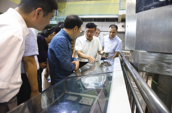 在EAST控制大厅和装置大厅,吴新潮介绍了磁约束受控核聚变原理、等离子体所大科学工程项目EAST、参与国际热核聚变实验堆ITER计划、中国聚变工程试验堆CFETR预研以及全面参与合肥综合性国家科学中心的相关情况。参观期间,来访党员干部在EAST控制大厅进行了重温入党誓词。