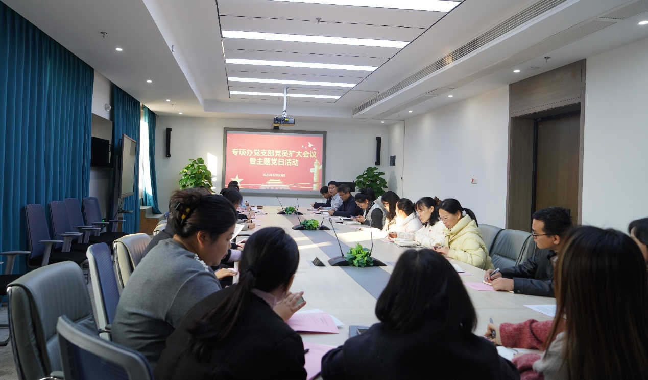 为深入学习贯彻党的二十届四中全会精神,以高度的政治自觉、饱满的政治热情、笃定的政治行动推动形成 “以学促干、以干践学”的良好氛围,12月25日,专项办党支部组织召开党员扩大会议暨主题党日活动,活动由党支部书记刘志宏主持。