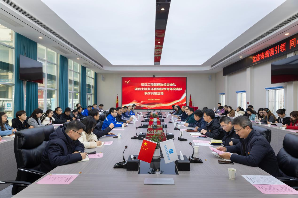 为深入贯彻落实党的二十届四中全会精神,进一步强化党建引领作用,推动党建与业务工作深度融合,凝聚跨单位、跨部门协同攻坚合力,全力保障项目高质量推进,12月24日下午,大装置项目工程管理攻关突击队、主机多环套装技术青年突击队以“党建铸魂强引领 同心同向聚合力”为主题开展联学共建活动。