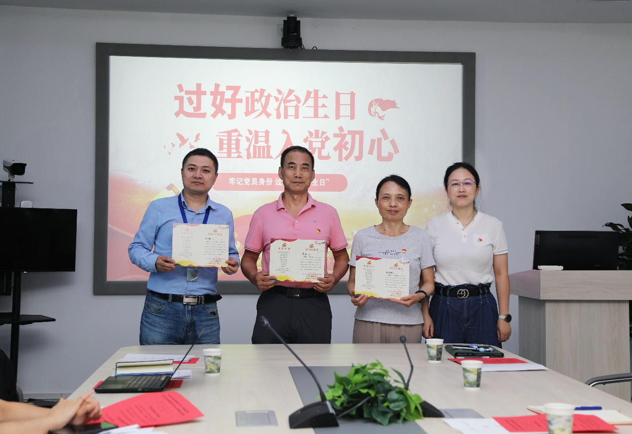 党日活动上,全体党员重温了入党誓词,并为7月份入党的党员送上“政治生日”贺卡,表达了党组织对党员的关怀与爱护,进一步强化党员的身份意识,激发党员的荣誉感、归属感和使命感。