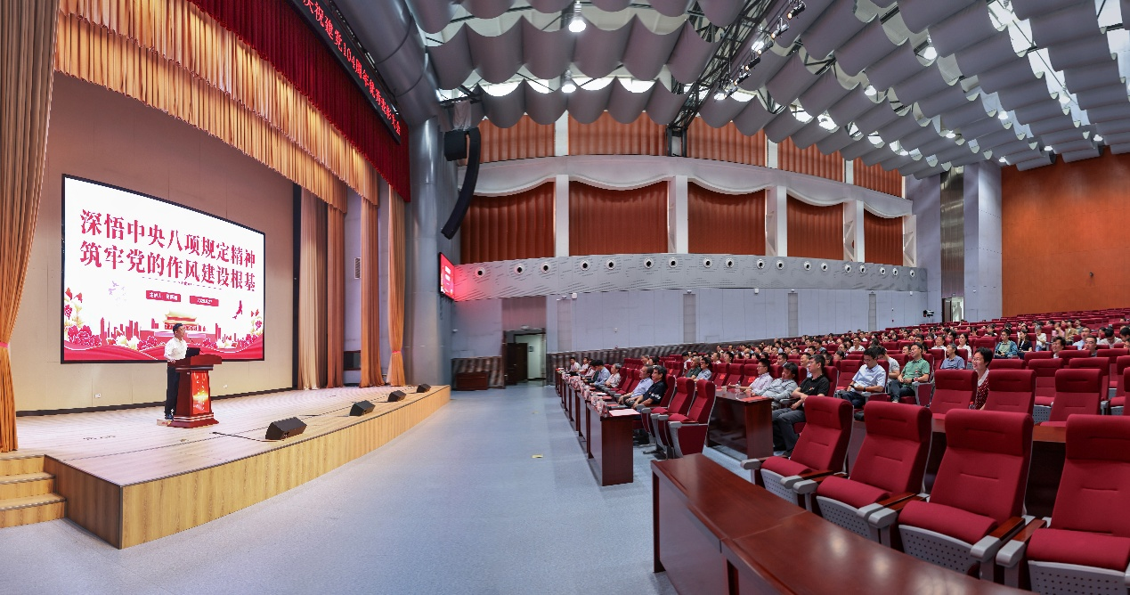 吴新潮在党课中系统阐述了中央八项规定精神的历史脉络与时代价值。他指出,深入贯彻中央八项规定精神学习教育,是党和国家领导人亲自点题部署的重要党建任务,彰显了以习近平同志为核心的党中央推进全面从严治党的坚定决心。他系统梳理了党的十八大以来开展的八次集中教育,从延安整风“窑洞对”到新时代“自我革命”,深刻阐释中央八项规定作为新时代“徙木立信之举”的政治意义——既是党自我净化、自我完善、自我革新、自我提高的重要途径,也是密切党群干群关系的必然要求,更是推进中国式现代化的有力保障。