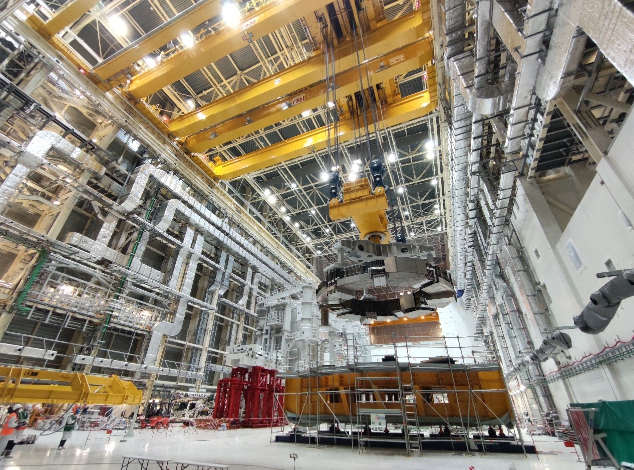 当地时间4月21日,在法国南部卡达拉舍的国际热核聚变实验堆ITER现场,PF6线圈成功落位至堆坑内的临时支撑,吊装工作圆满完成,PF6线圈成为首个进入ITER装置大厅进行安装的大型超导磁体,标志着ITER磁体系统的安装工作全面开启。