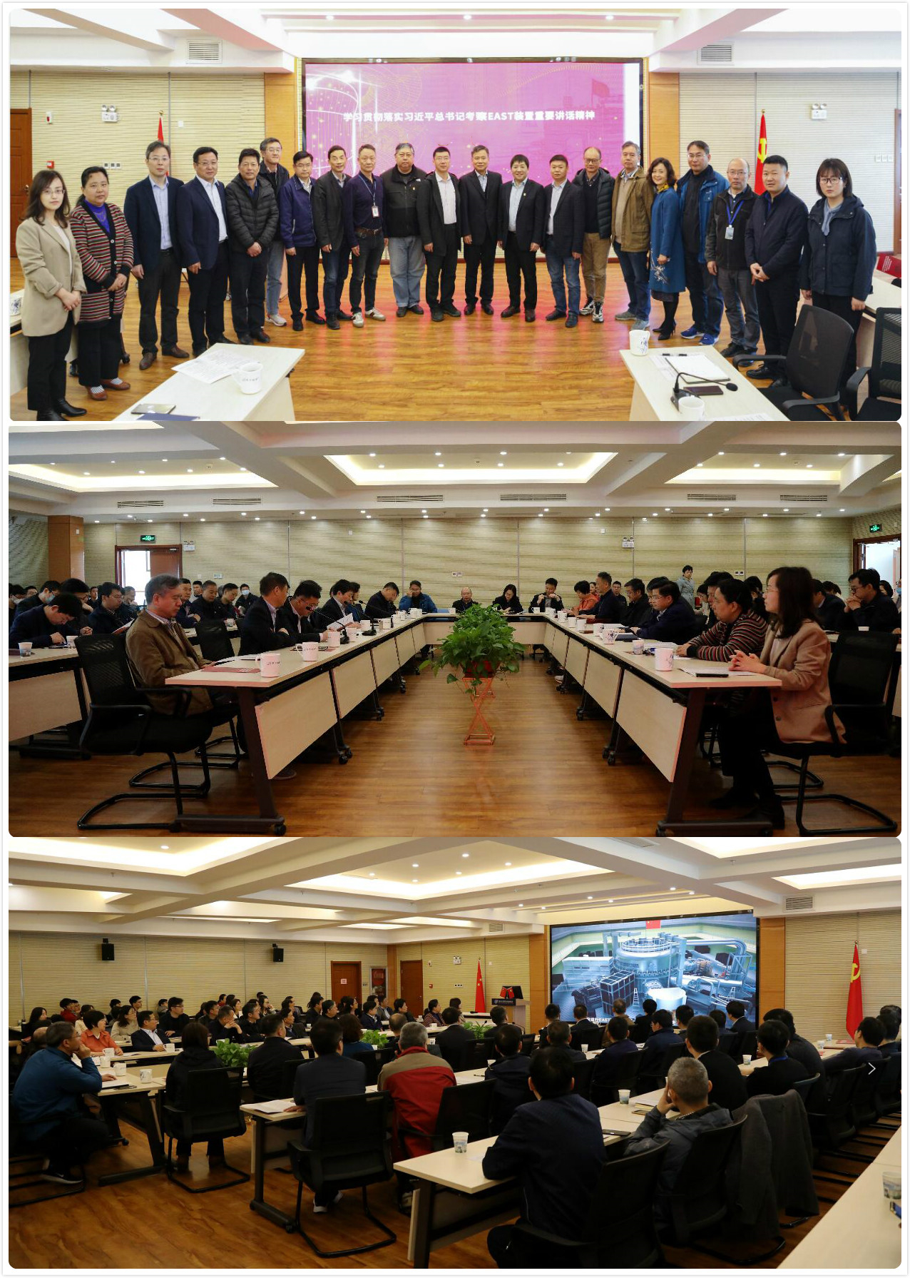 吴新潮书记在致辞中指出总书记考察EAST装置十周年,又恰逢喜迎建党百年,当前全党全国上下正在开展党史学习教育和喜迎建党百年系列活动,我们即将迎来百年建党的伟大时刻。等离子体所围绕百年建党主题,正在组织开展“喜迎建党百年,逐梦聚变前行”的系列活动。深入学习贯彻落实习近平总书记考察EAST时的重要讲话精神,就是要求全所党员干部群众及广大科研人员,坚持以习近平新时代中国特色社会主义思想为指导,贯彻落实总书记关于科技创新的重要论述和重要指示精神,始终不忘科技报国初心,坚守人类聚变能源梦想,用实际行动践行新时代科技自立自强的历史使命,为早日实现核聚变能源的开发应用而努力奋斗。
