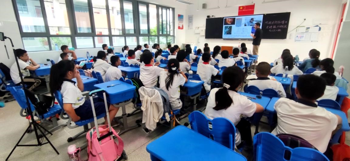 三场科普报告中在讲述基本科学原理和解释科学现象的同时,还穿插讲述了老一辈科学家们艰苦奋斗、科学报国的光荣传统和追求真理、勇攀高峰的科学精神。伴随着热烈的掌声和欢快的课堂氛围,科学探索和科学思想的种子在孩子们心中悄然播下、生根、发芽。