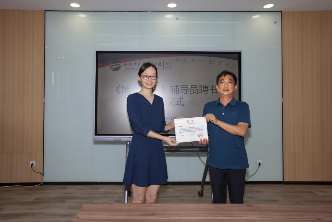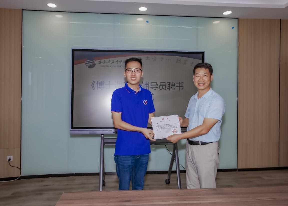 合肥五十中东校振兴路校区校领导为三位科普报告人颁发“博士课堂辅导员证书”