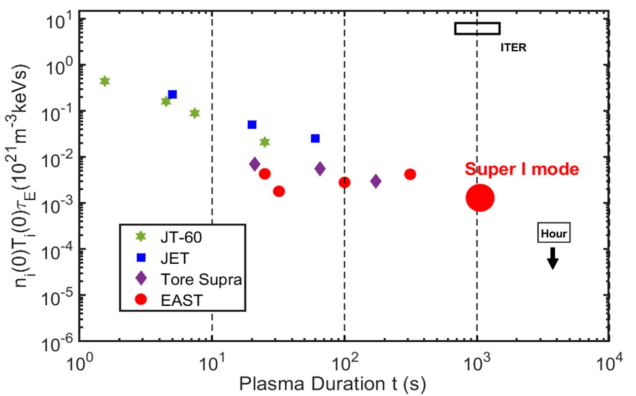 图2.聚变三乘积 (密度×温度×能量约束时间) 和等离子放电时间的图表