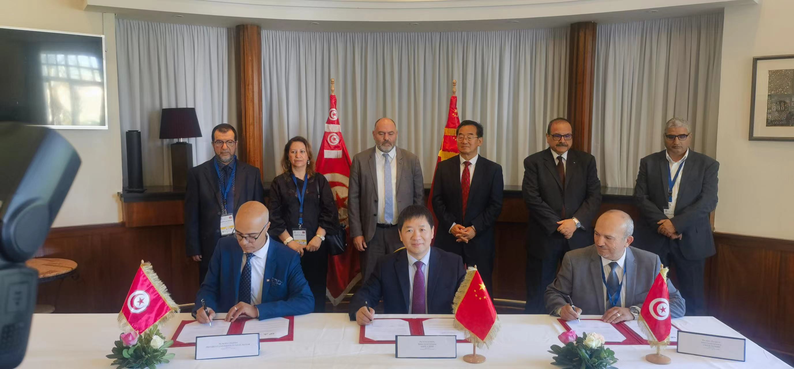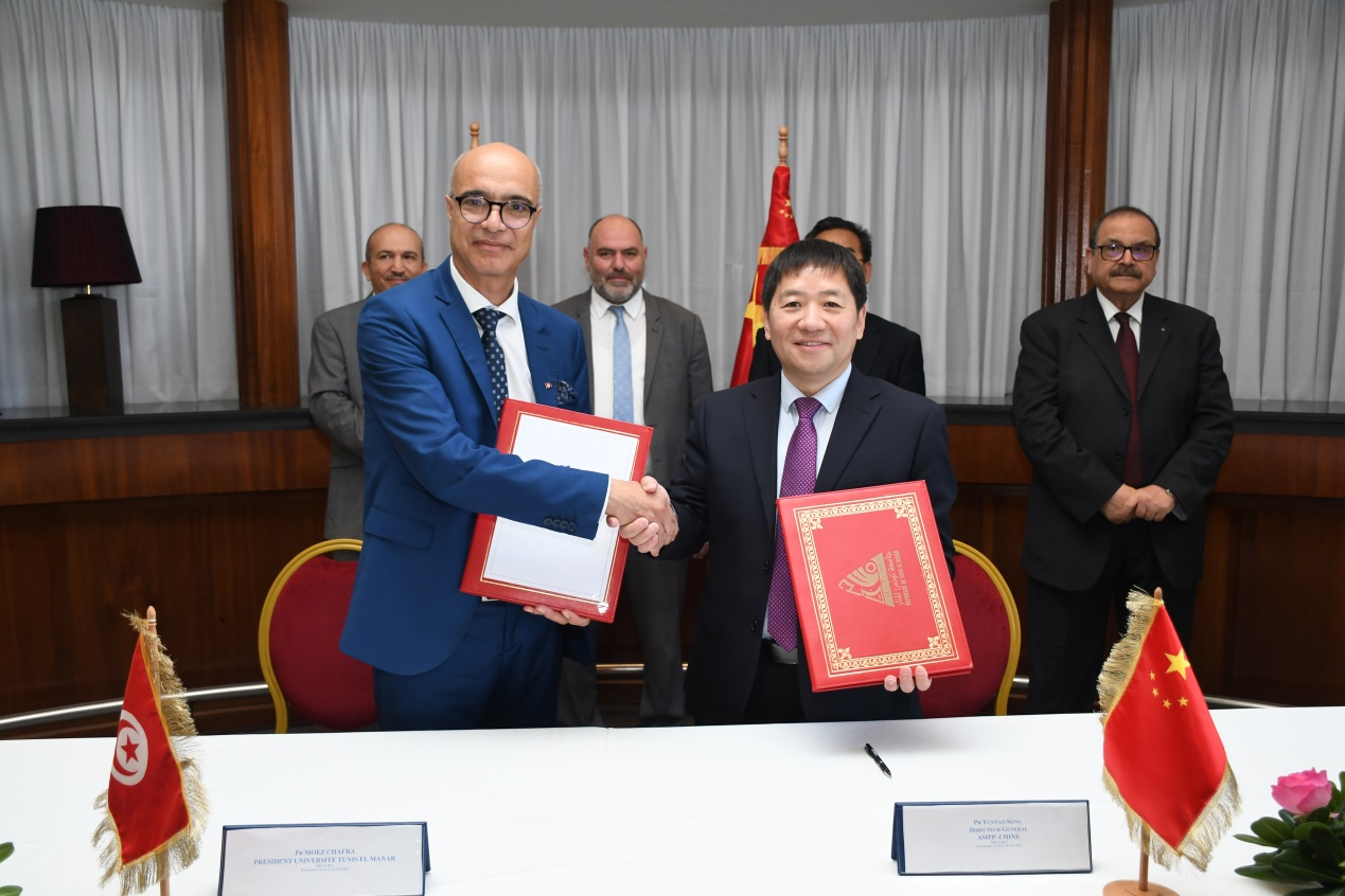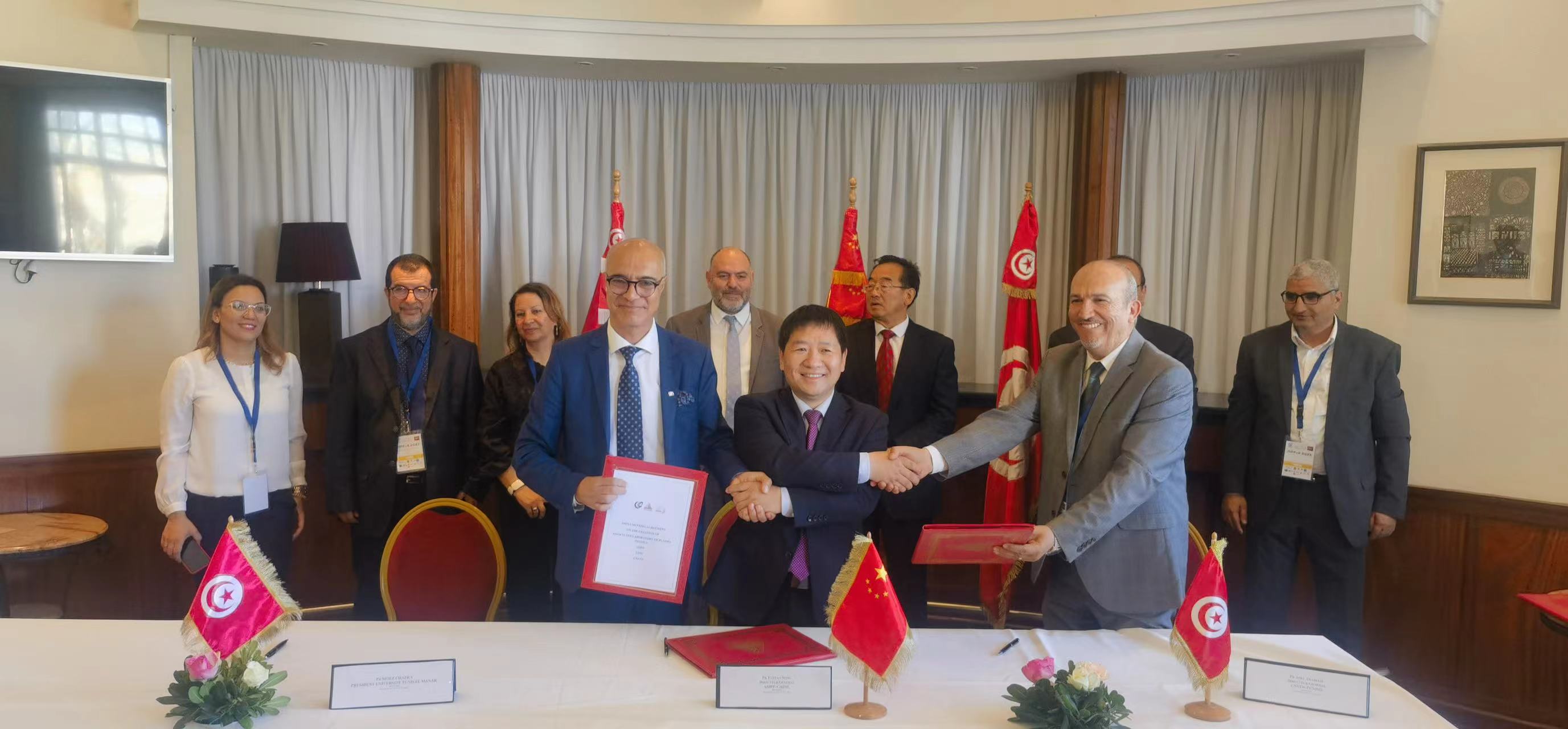 开幕式上,宋云涛代表等离子体所与突尼斯埃尔马纳大学签署合作备忘录并与突尼斯国家核科学与技术中心、突尼斯埃尔马纳大学三方签署成立等离子体物理联合实验中心的协议。来自突尼斯周边6个中东北非国家的60名硕士和博士生参加了此次培训授课。