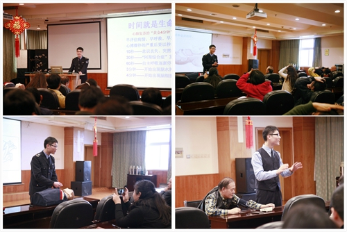 讲座介绍了心脏停搏后的紧急CPR心肺复苏的标准流程和注意事项,大气污染和雾霾对人体的巨大危害和防治的相关知识。授课老师还结合实际情况对于常见的腰颈椎类疾病,讲述了简单有效的病症程度的判断方法,并推荐了几种行之有效又易于实施的自我理疗方法。并应用中医的筋络穴位理论,向大家普及日常的养生知识。讲座中师生互动,台下踊跃提问,台上积极作答,受到参与职工的好评。