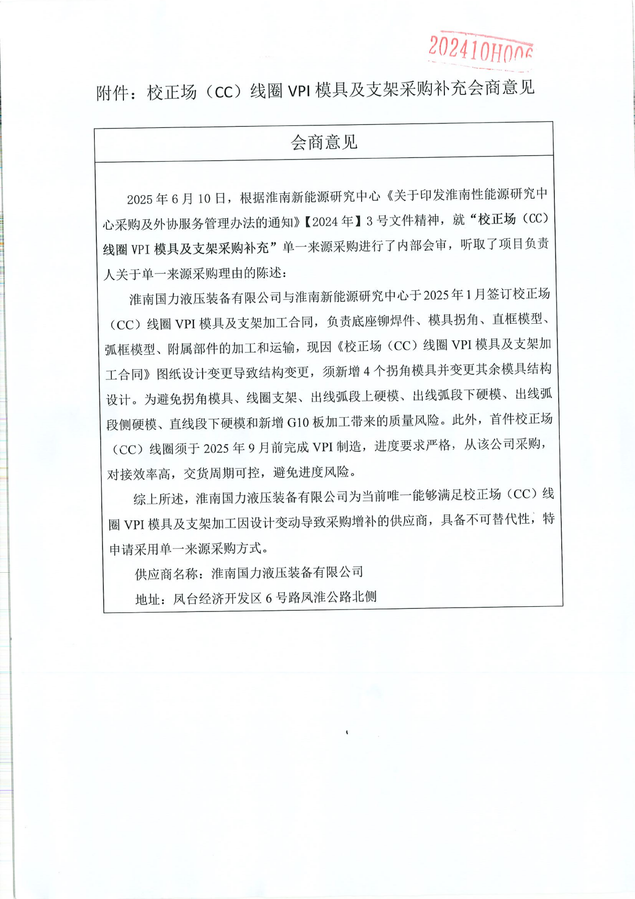 根据淮南新能源研究中心《关于印发淮南新能源研究中心采购及外协业务管理办法的通知》精神,就以下单一来源采购进行了内部会商,现将会商意见公示如下: