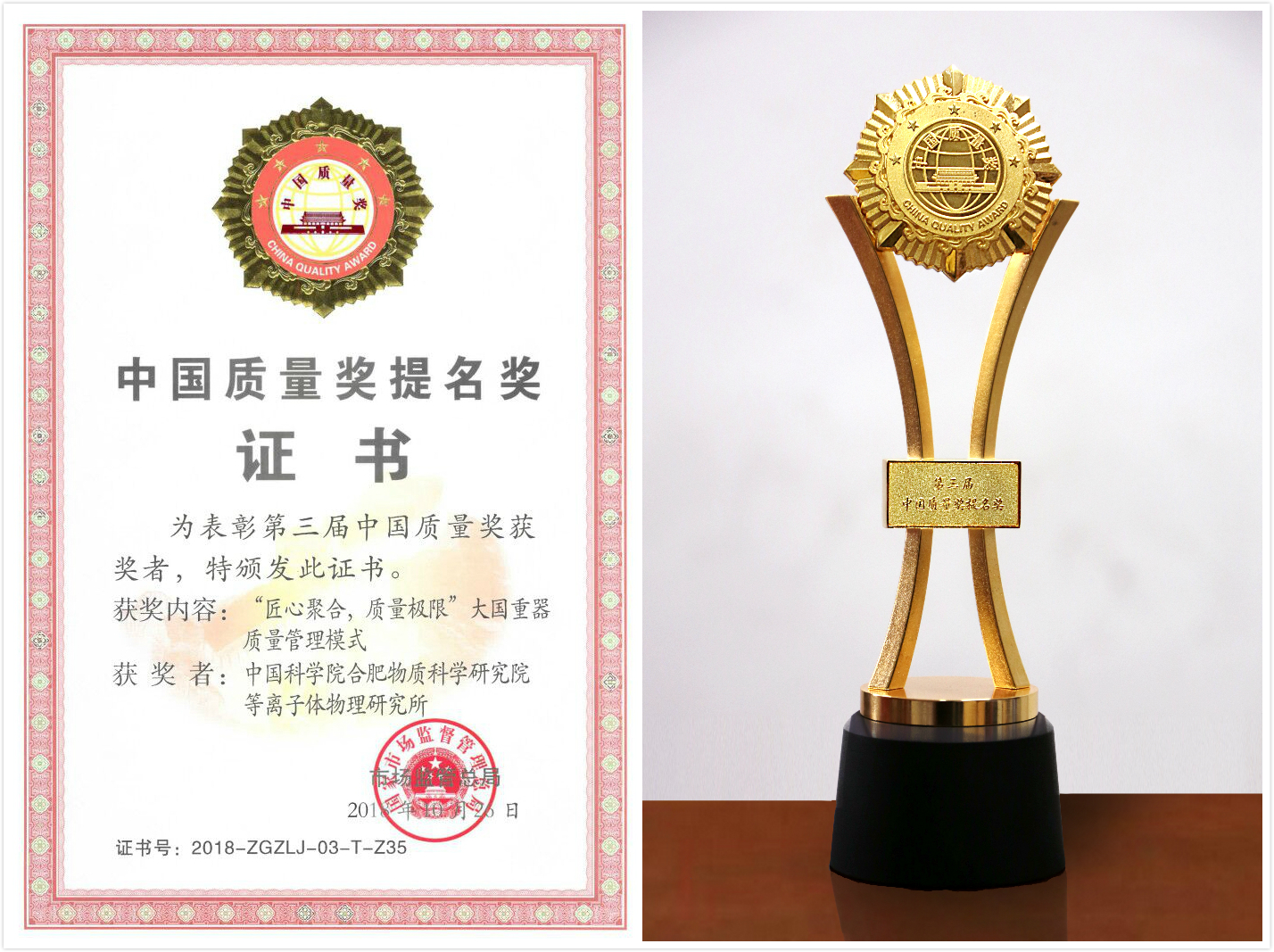 11月2日,第三届中国质量奖颁奖大会在京召开。等离子体所获授中国质量奖提名奖。