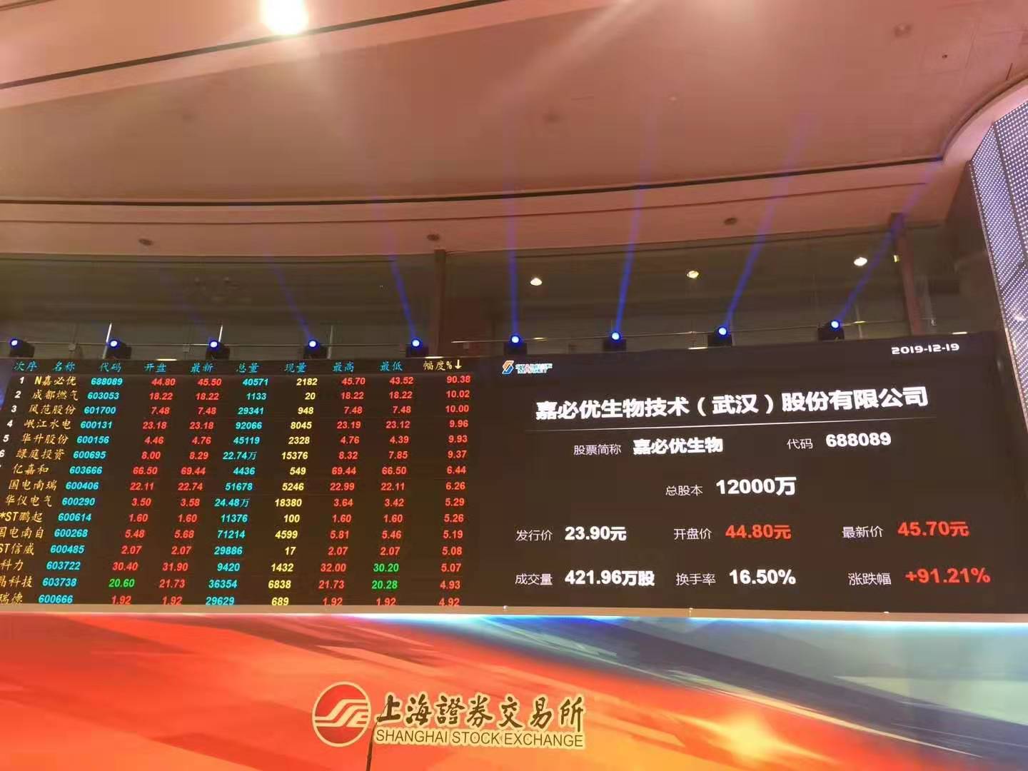 12月19日上午9点30分,随着上市鸣锣声响起,嘉必优生物技术(武汉)股份有限公司在上海证券交易所科创板正式上市交易,股票代码:688089,申购简称:嘉必优。