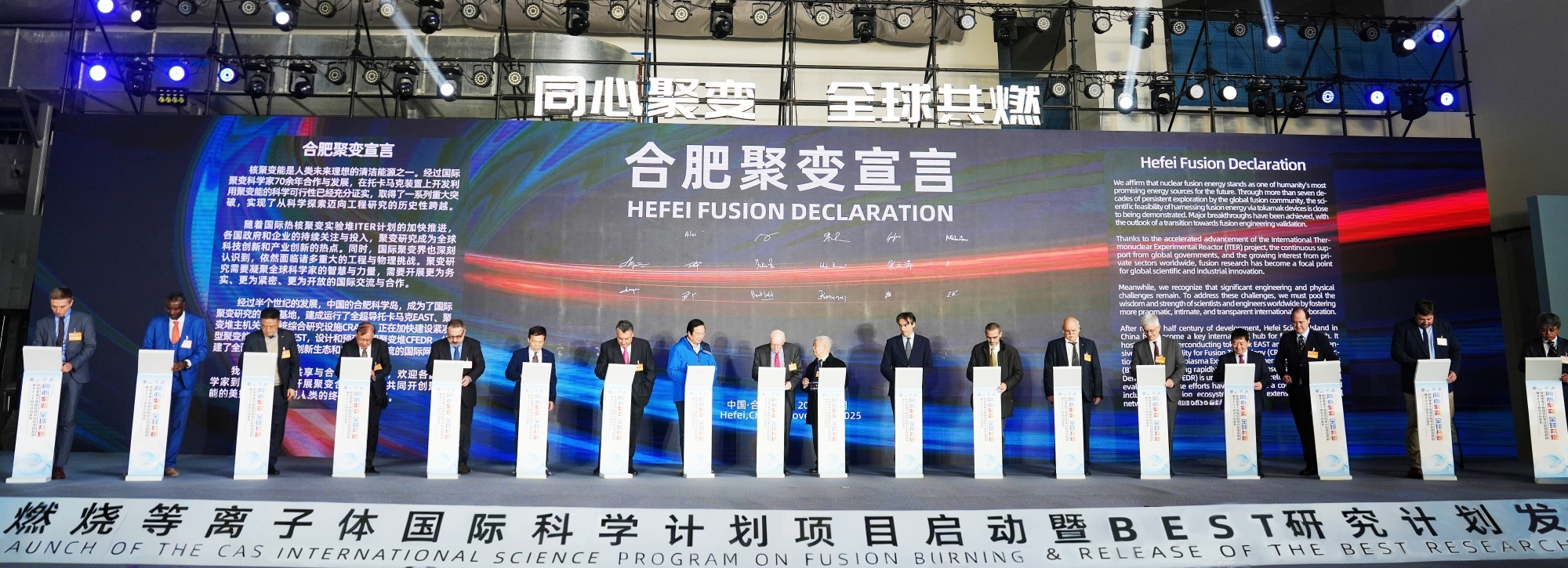 11月24日,紧凑型聚变能实验装置BEST研究计划面向全球发布。来自法国、英国、德国、意大利、瑞士、西班牙、奥地利、比利时等10多个国家的聚变科学家在合肥共同签署《合肥聚变宣言》。聚变科学家们表示,经过国际聚变科学界数十年的合作与发展,聚变研究取得了一系列重大突破,但依然面临诸多重大挑战,需要凝聚全球科学家的智慧与力量,开展更为务实、更为紧密、更为开放的国际交流与合作。聚变科学家们倡议开放共享与合作共赢精神,鼓励聚变领域的科研人员到合肥开展聚变合作研究,共同开创聚变能源的美好未来,实现人类的终极能源梦想。