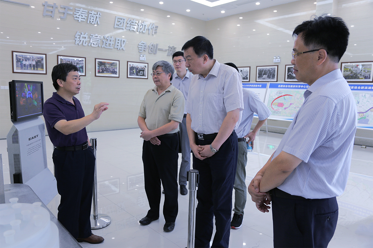 在EAST装置大厅,舒歌群听取了院所领导关于EAST装置先进性及其近年来在工程技术和物理实验研究中取得的重大进展,以及等离子体所在聚变研究自主发展的关键技术和参与ITER计划相关情况的介绍。舒歌群就相关问题提问,了解中国聚变工程实验堆项目情况以及聚变研究中的面临的挑战。