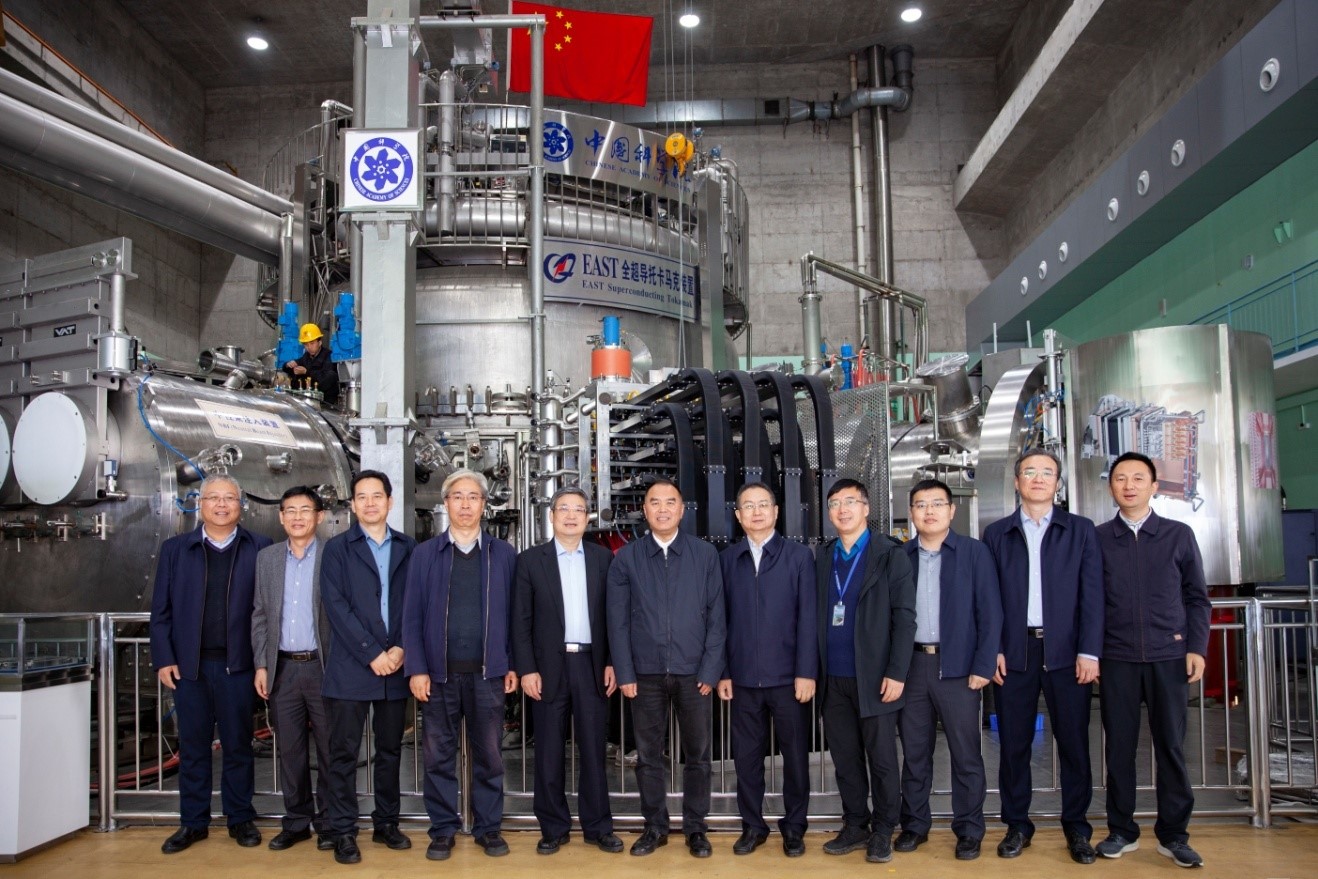 在EAST控制大厅,调研组详细了解了等离子体所四十余年在核聚变领域的研究工作以及取得的系列创新型成果,东方超环EAST历年来不断取得物理实验重大突破,等离子体所开展以我为主的国际合作以及全面参与合肥综合性国家科学中心建设等相关情况。戴俊良一行就感兴趣的问题现场与吴新潮展开交流,并建议要与社会各界多开展交流合作,期待尽快实现核聚变能发电。