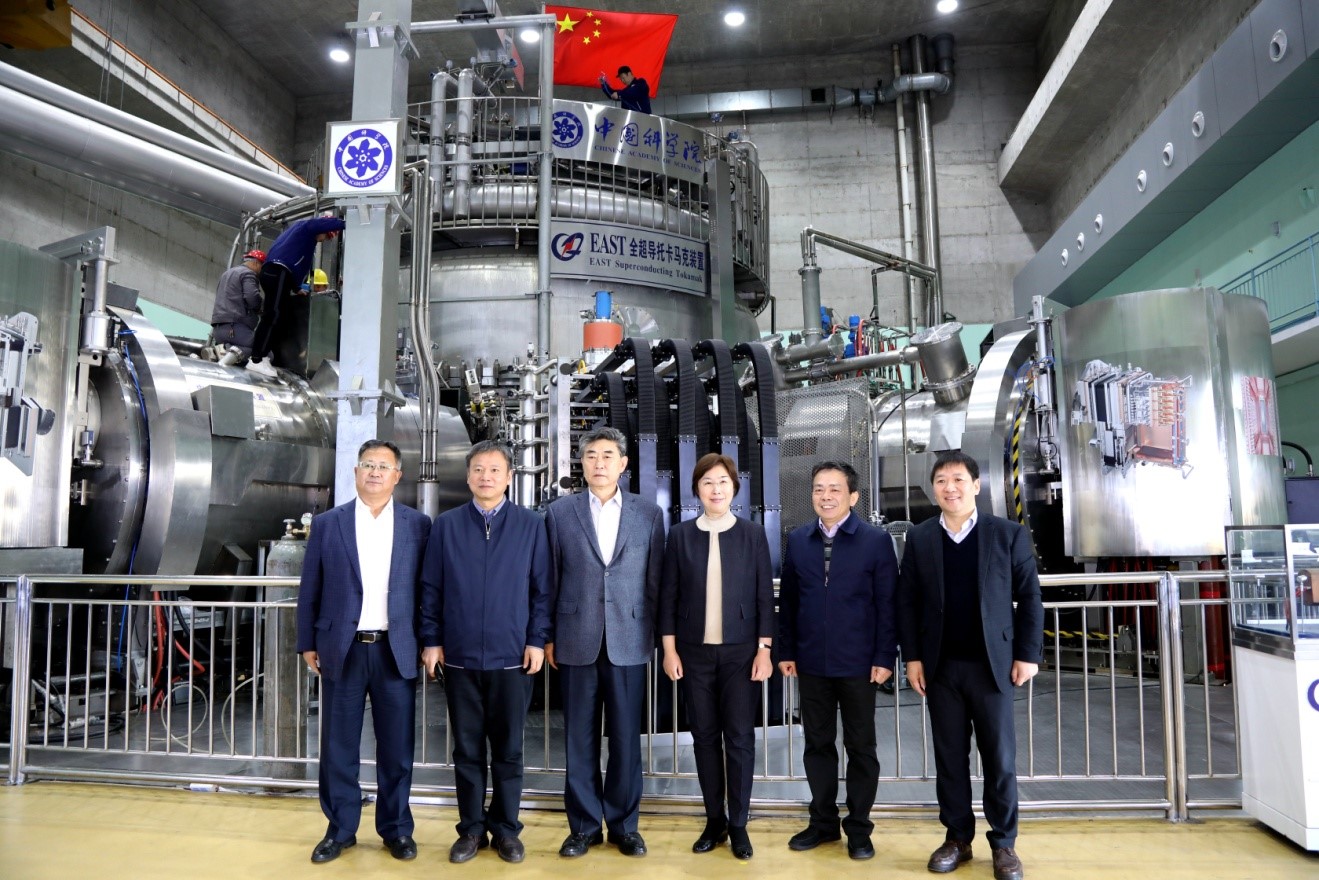 在EAST控制大厅和装置大厅,邹加怡听取了围绕核聚变研究的进展,EAST装置历年来获得的物理实验成果,等离子体所依托大科学装置平台开展以我为主的国际合作,深入参与国际大科学计划以及全面参与合肥综合性国家科学中心建设取得的创新成果的介绍。在听取介绍的过程中邹加怡就感兴趣的话题现场与宋云涛和万宝年展开交流。她非常赞赏等离子体所发扬艰苦奋斗的大科学团队精神,几代人投身核聚变领域研究取得了瞩目的世界级创新性成果,期望核聚变事业取得新的发展和突破。