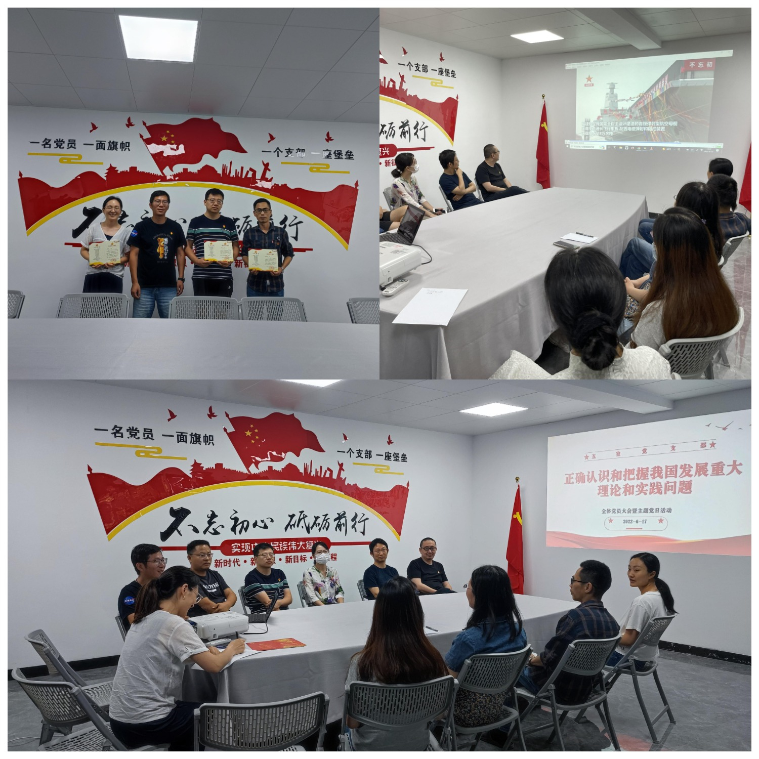 随后宣传委员刘晓娟带领广大党员认真学习了《正确认识和把握我国发展重大理论和实践问题》重要文件内容。文章强调,进入新发展阶段,我国发展面临许多新的重大问题,需要正确认识和把握。文章对“正确认识和把握实现共同富裕的战略目标和实践途径、正确认识和把握资本的特性和行为规律、正确认识和把握初级产品供给保障、正确认识和把握防范化解重大风险、正确认识和把握碳达峰碳中和五大理论和实践问题进行了重点详细的阐述。会议最后为6月份入党的党员同志颁发政治生日贺卡,并传达了中科院关于开展“严谨表述、虚心治学”学风专项工作的通知精神。